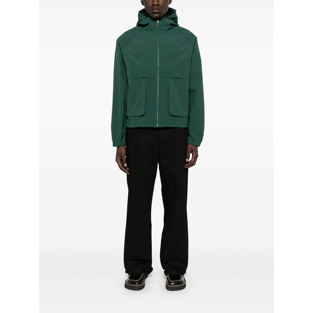 black concealed fly and button fastening belt loops two diagonal pockets to the sides two rear patch pockets