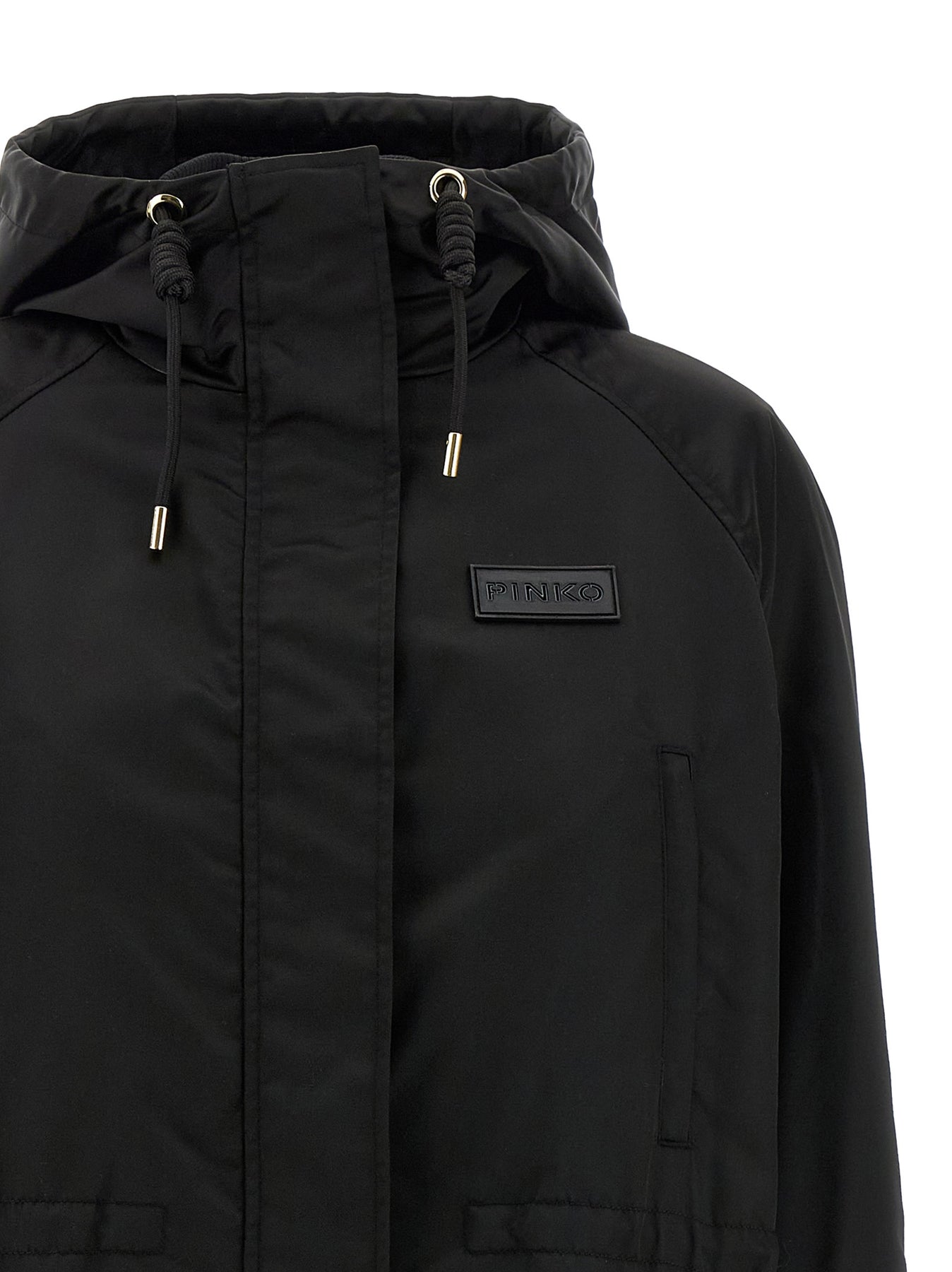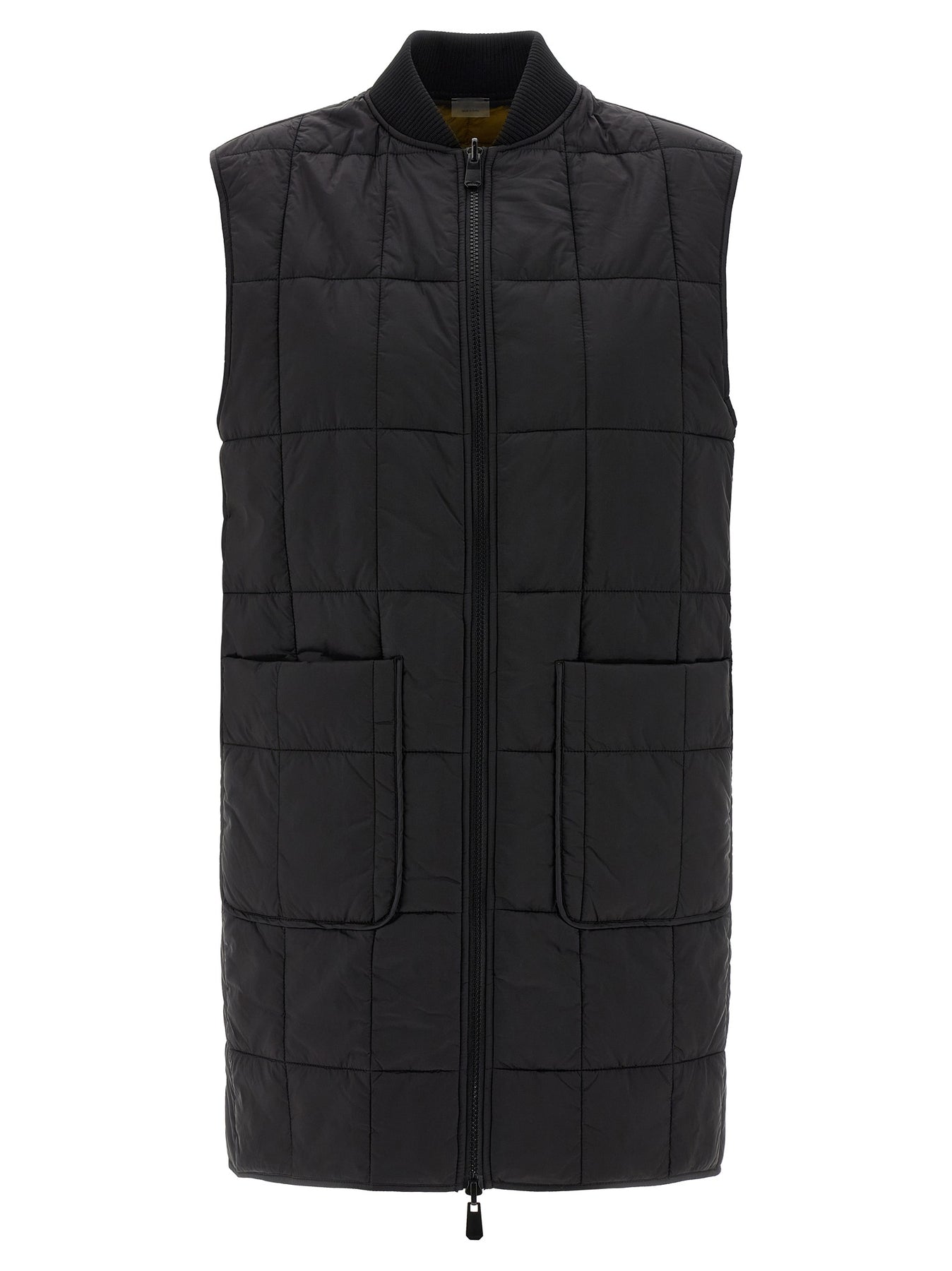'Delma' 2-in-1 long parka consisting of shiny nylon canvas outer part, fleece lining, adjustable hood, tone-on-tone silicone logo patch and zip and snap button closure on the front, pockets, drawstring at the waist and at the hem, long sleeves with zip on the cuffs, asymmetrical hem with tail split at the back and removable double-sided vest in quilted and slightly padded nylon, Contrast lining, high neck, front zip closure, pockets.