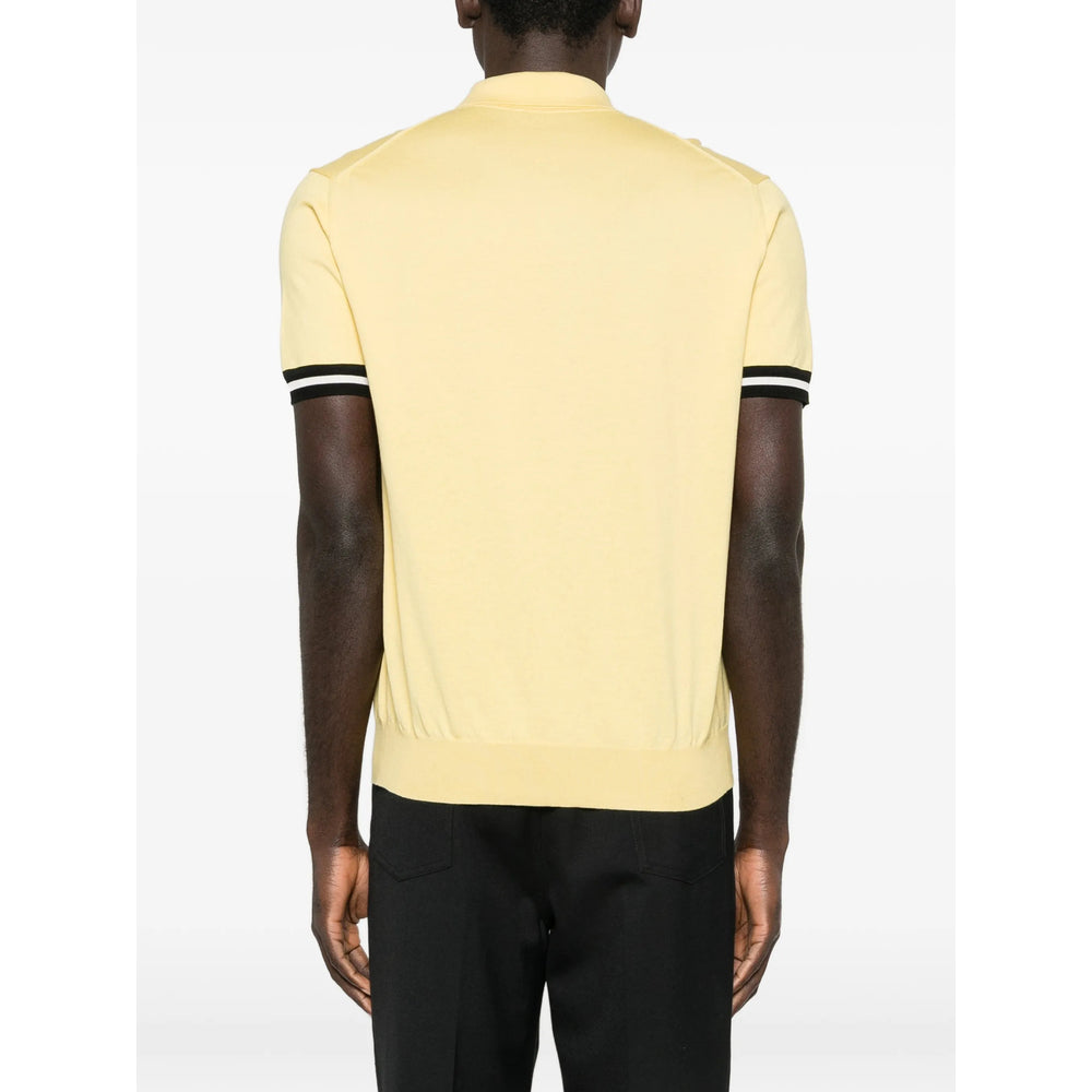 yellow striped sleeve ribbed hem point collar front button placket