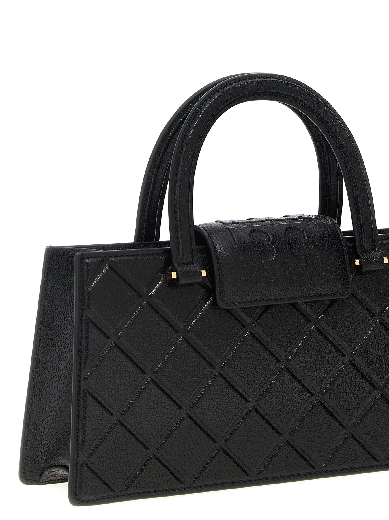 'Fleming East-West' hammered leather shopping bag with embossed diamond quilting, double fixed handle, magnetic flap closure with embossed logo, chain and leather shoulder strap Removable.