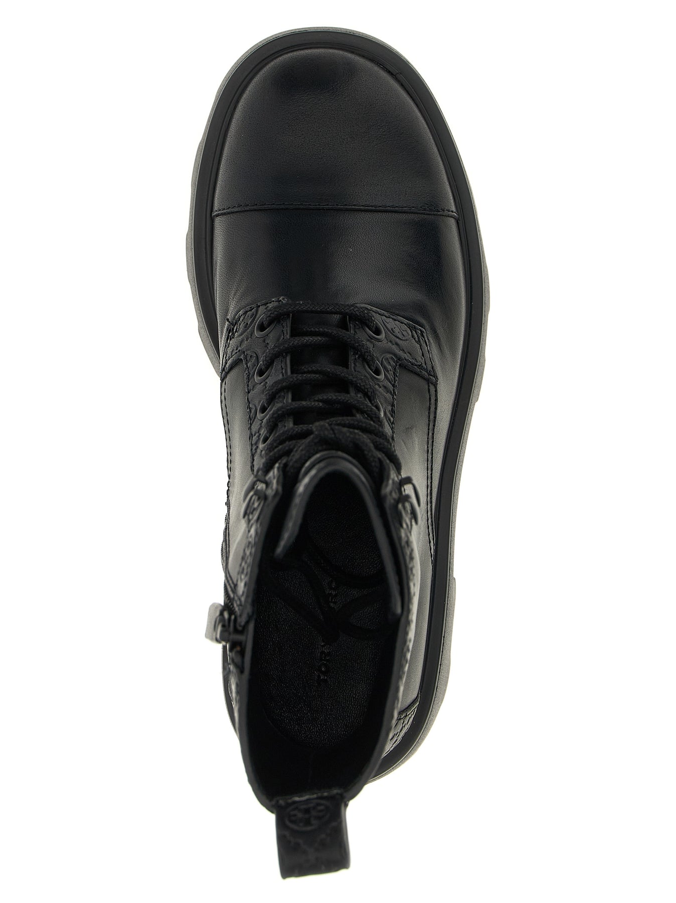 Leather combat boots with tone-on-tone embossed 'T Monogram' details, front lace closure and side zip, shiny nappa leather lining, EVA tank sole
