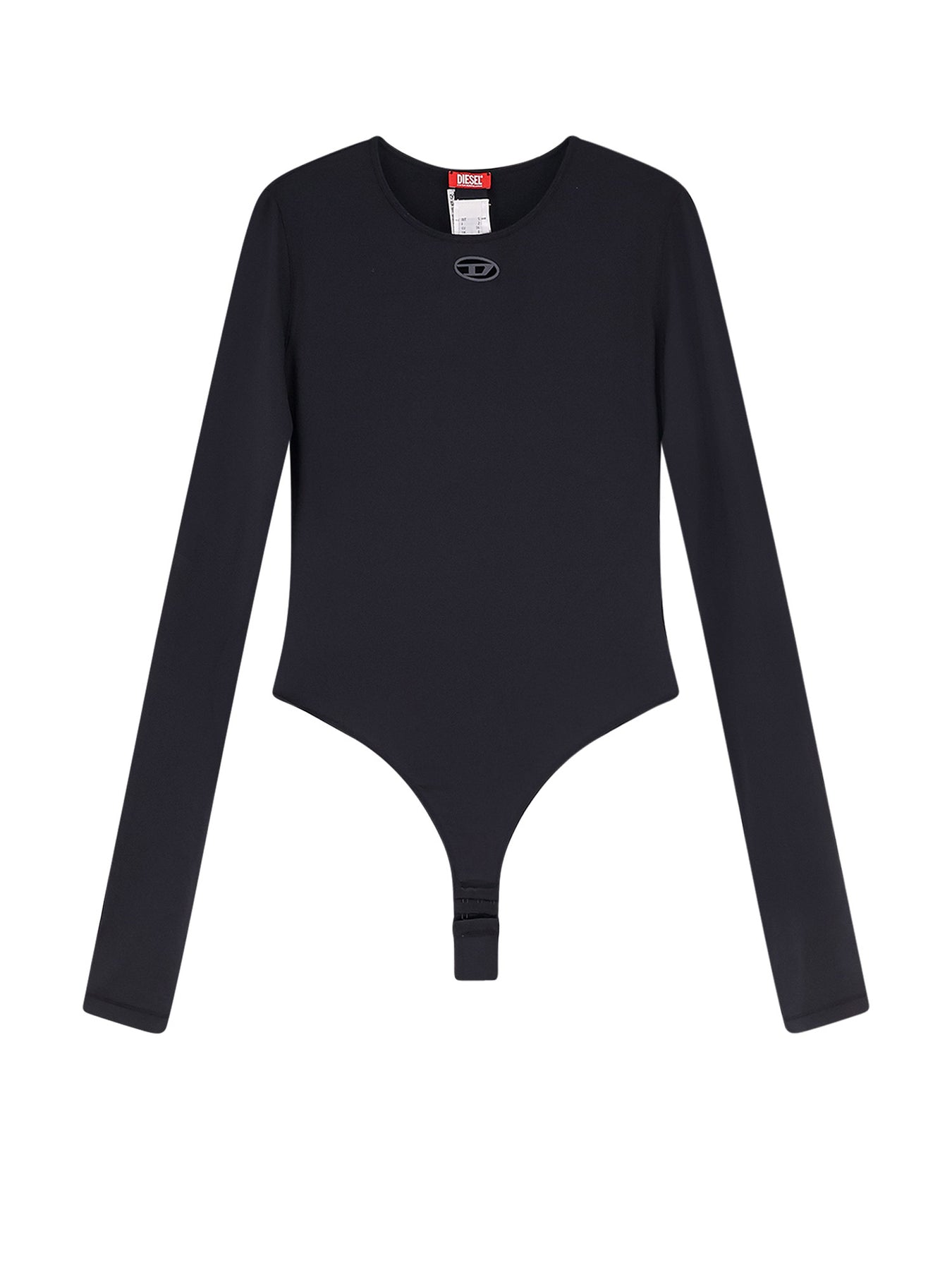 Crew-neck Button closure at the bottom Long sleeve Cut-out logo patch on the front 90% nylon 10% elastane A183170IKBN900