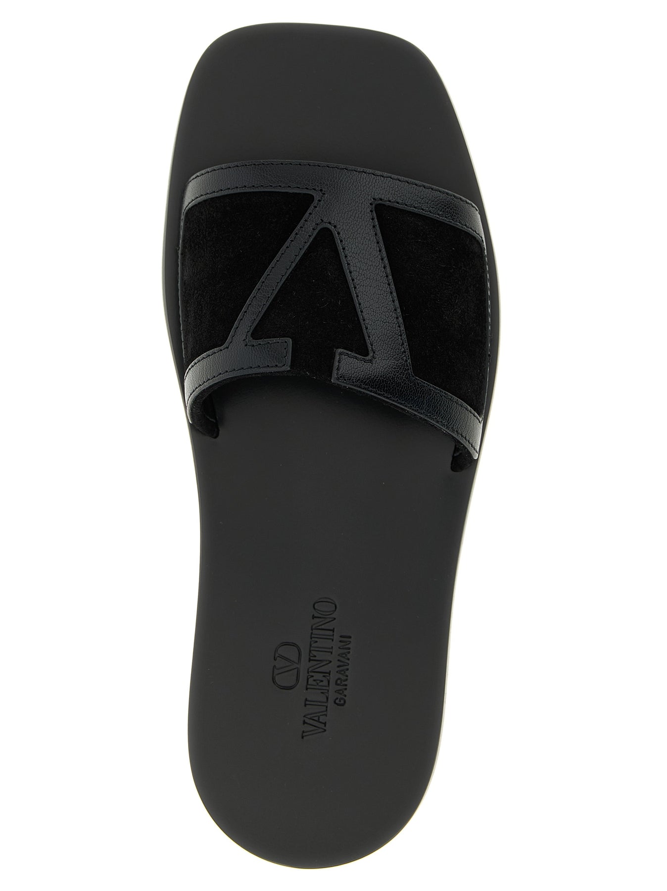 'Viva Superstar' nappa and suede slides with tone-on-tone 'VLogo Signature' band, leather sole with rubber sole.