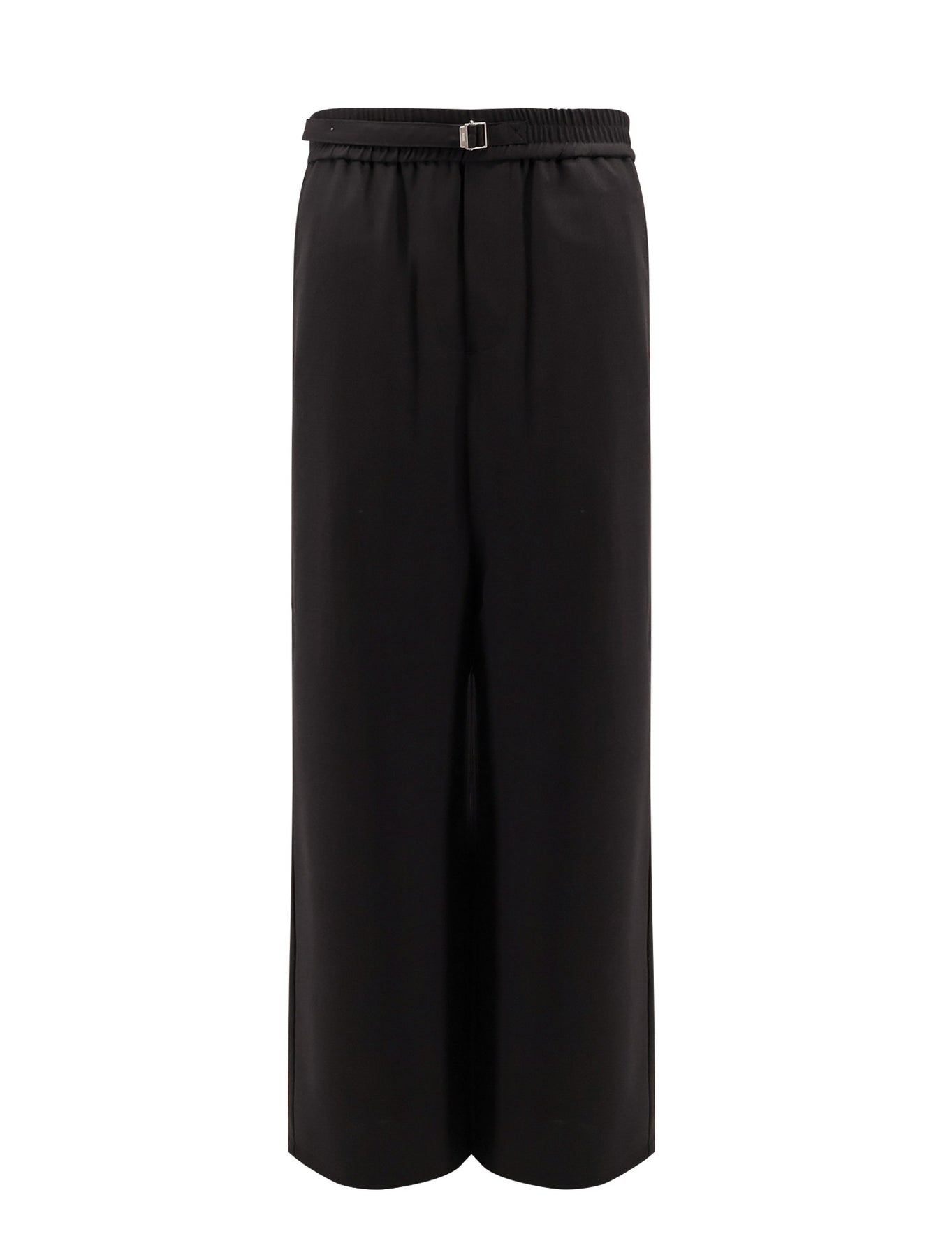 SKU: HTR214WV0066_001 - Ribbed elastic waistband adjustable drawstring at waist with metal buckle slant pockets on the front applied pockets on the back 100% virgin wool