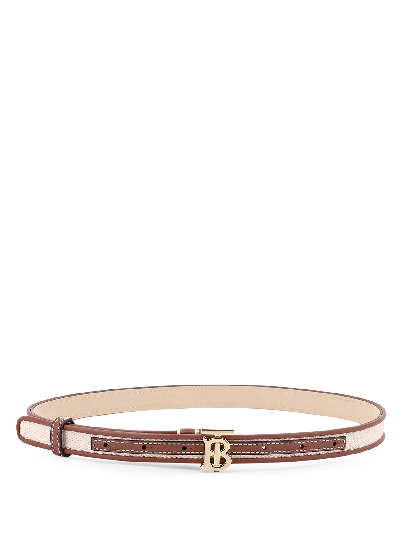 Leather And Fabric Belt With Tb Gold Metal Buckle