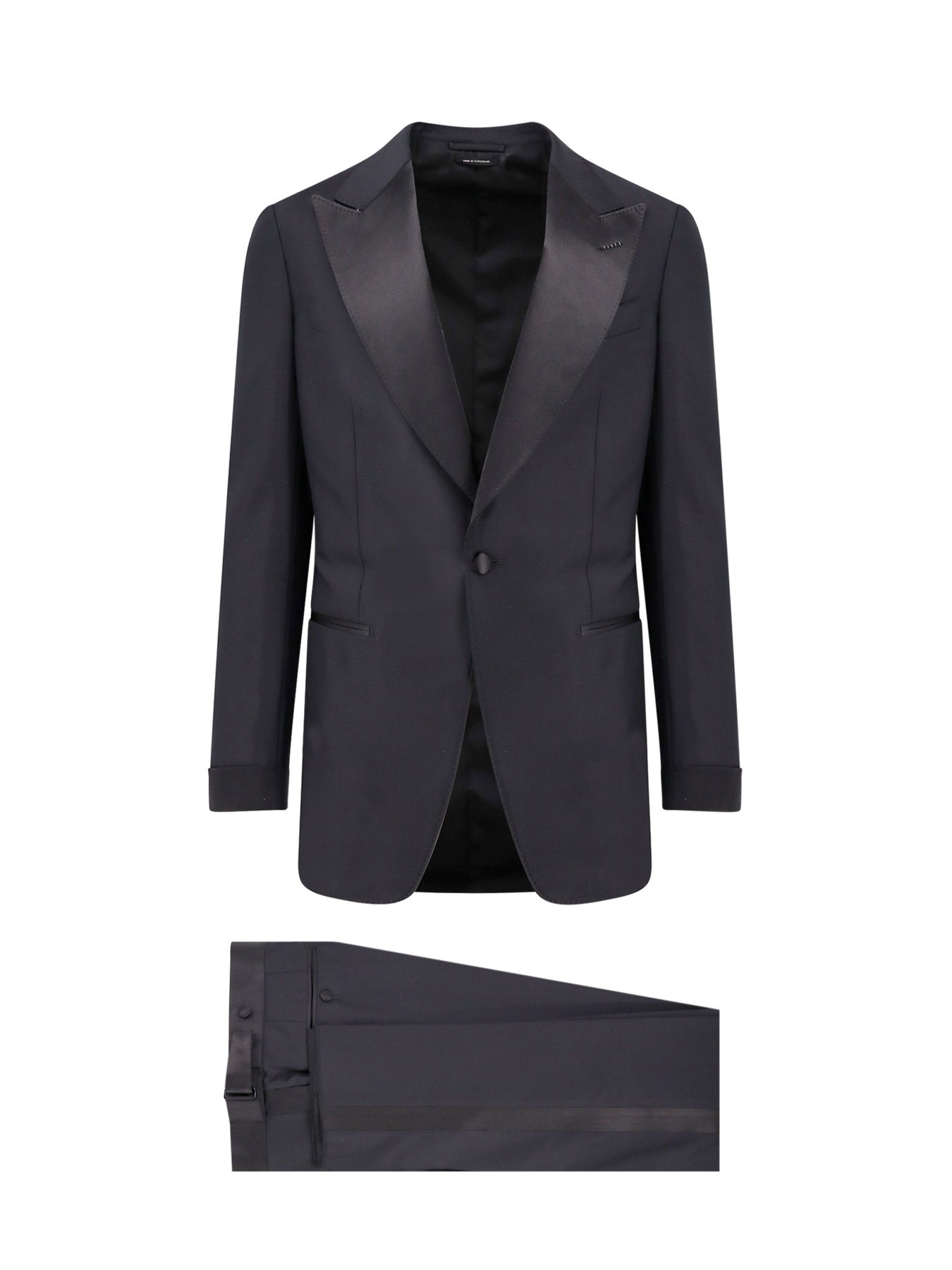 SKU: 2EAPQ1WOS01_LB999 - Blazer with peak lapel and closure with one button one breast-pocket and two frontal welt pockets trouser with hooks, button and zip closure and four pockets made in italy 100% wool