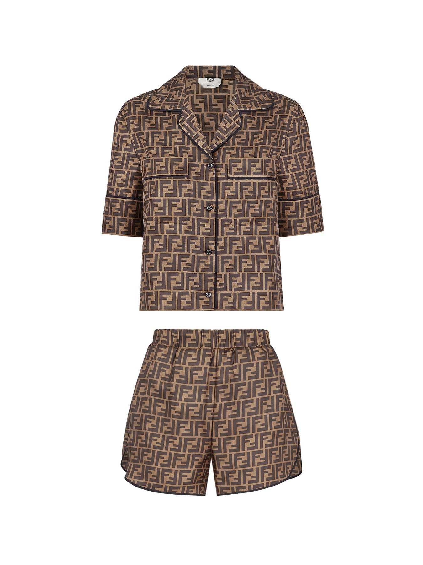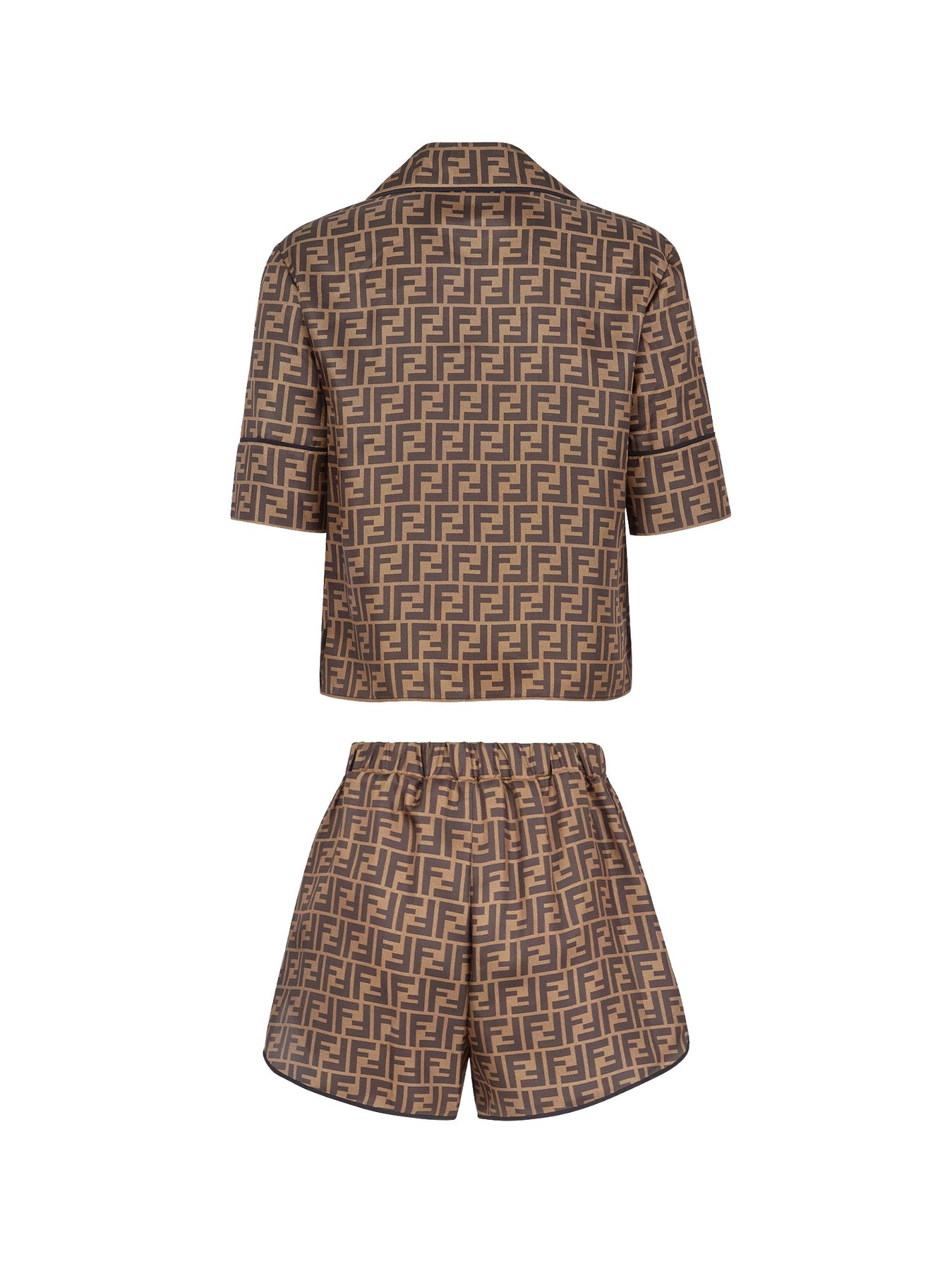 SKU: FE5085A8G3_F118W - Shirt with bowling collar and short sleeve short with elastic waistband detail with matched bag made in italy 100% silk