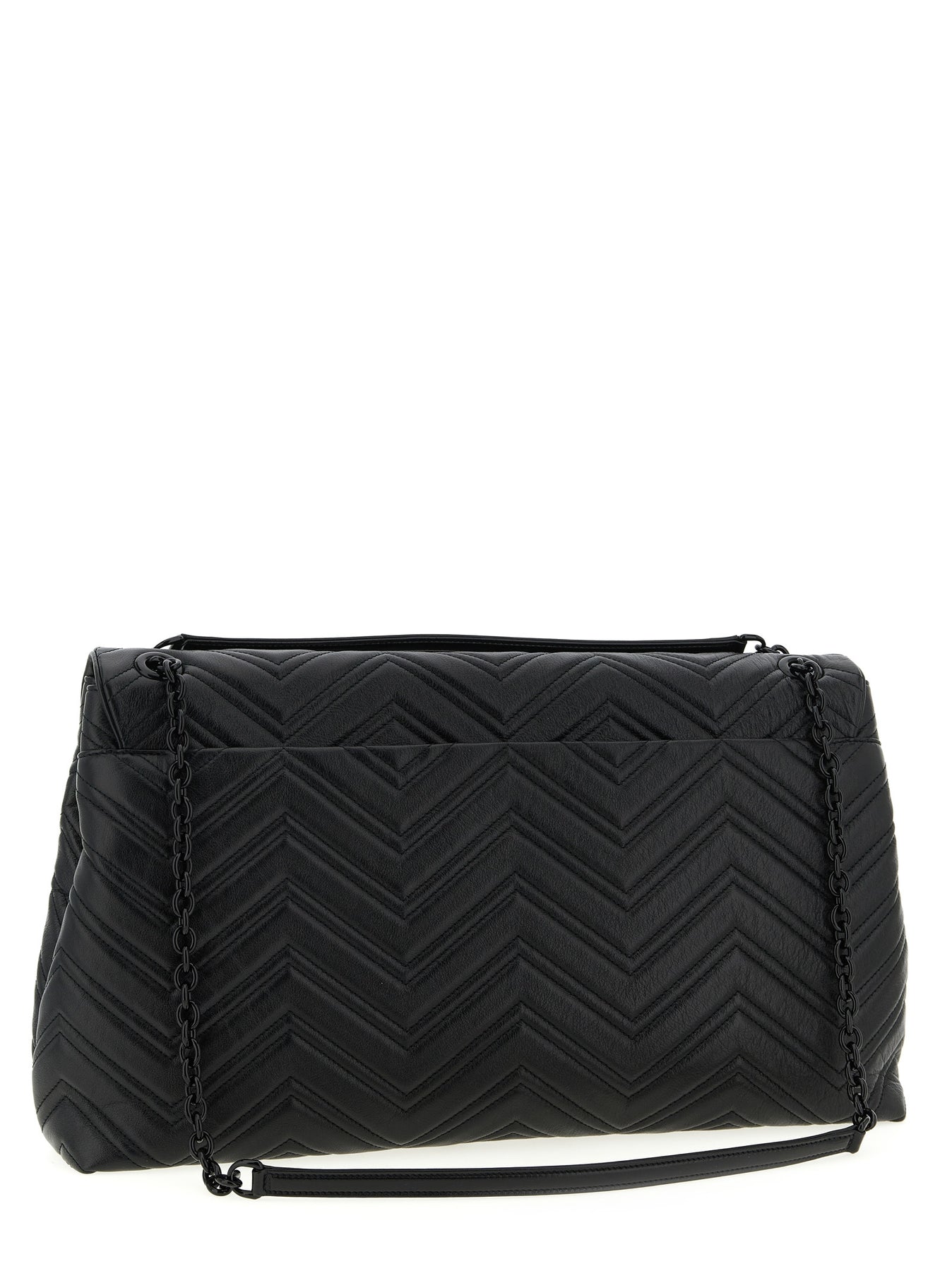 'GG Marmont' large shoulder bag in quilted matelassé leather with chevron pattern, sliding enameled chain shoulder strap with leather handles.