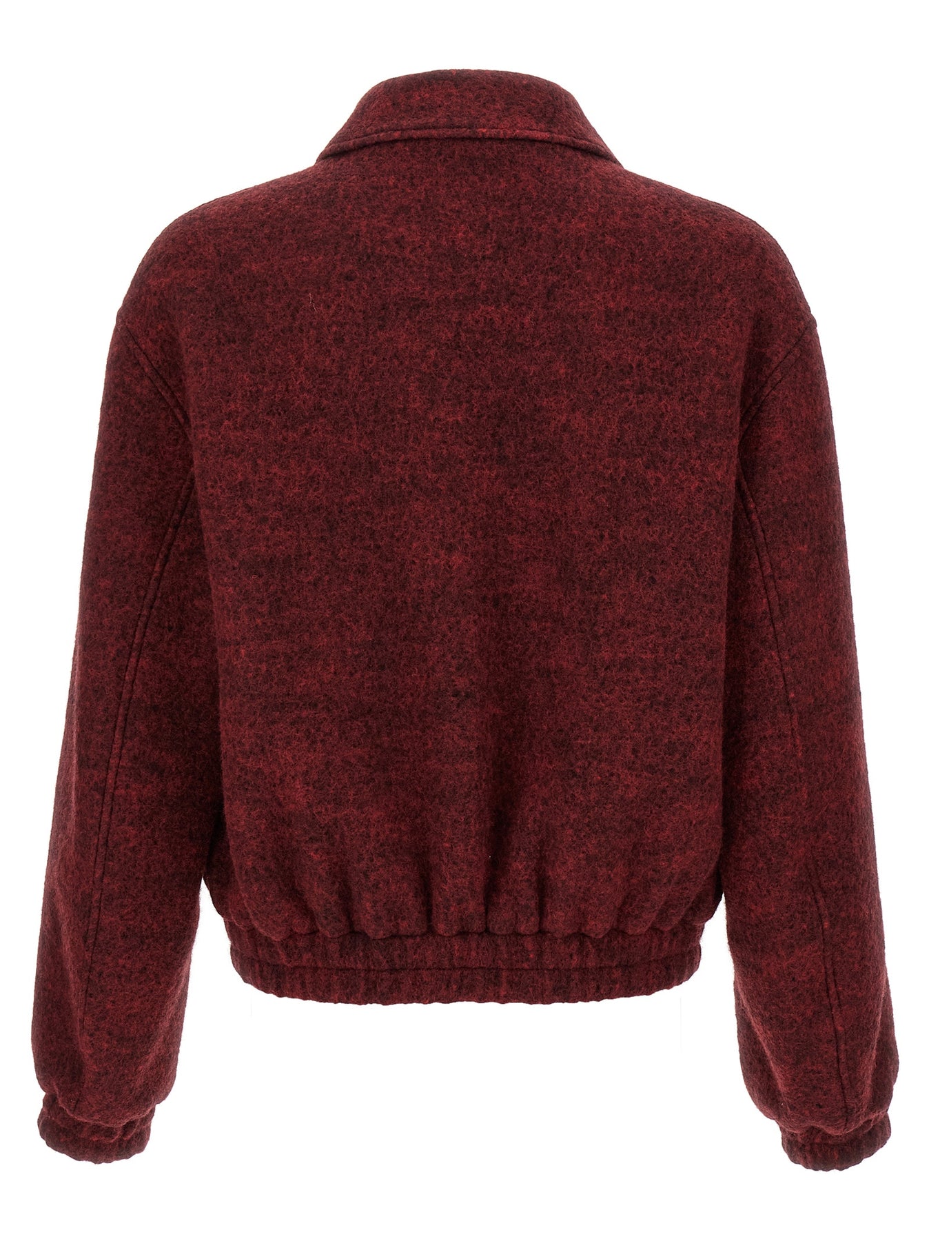 Mélange wool bomber jacket, shirt collar, front zip closure, pockets, long sleeves with elastic cuffs and dropped shoulders, elastic hem, viscose lining.