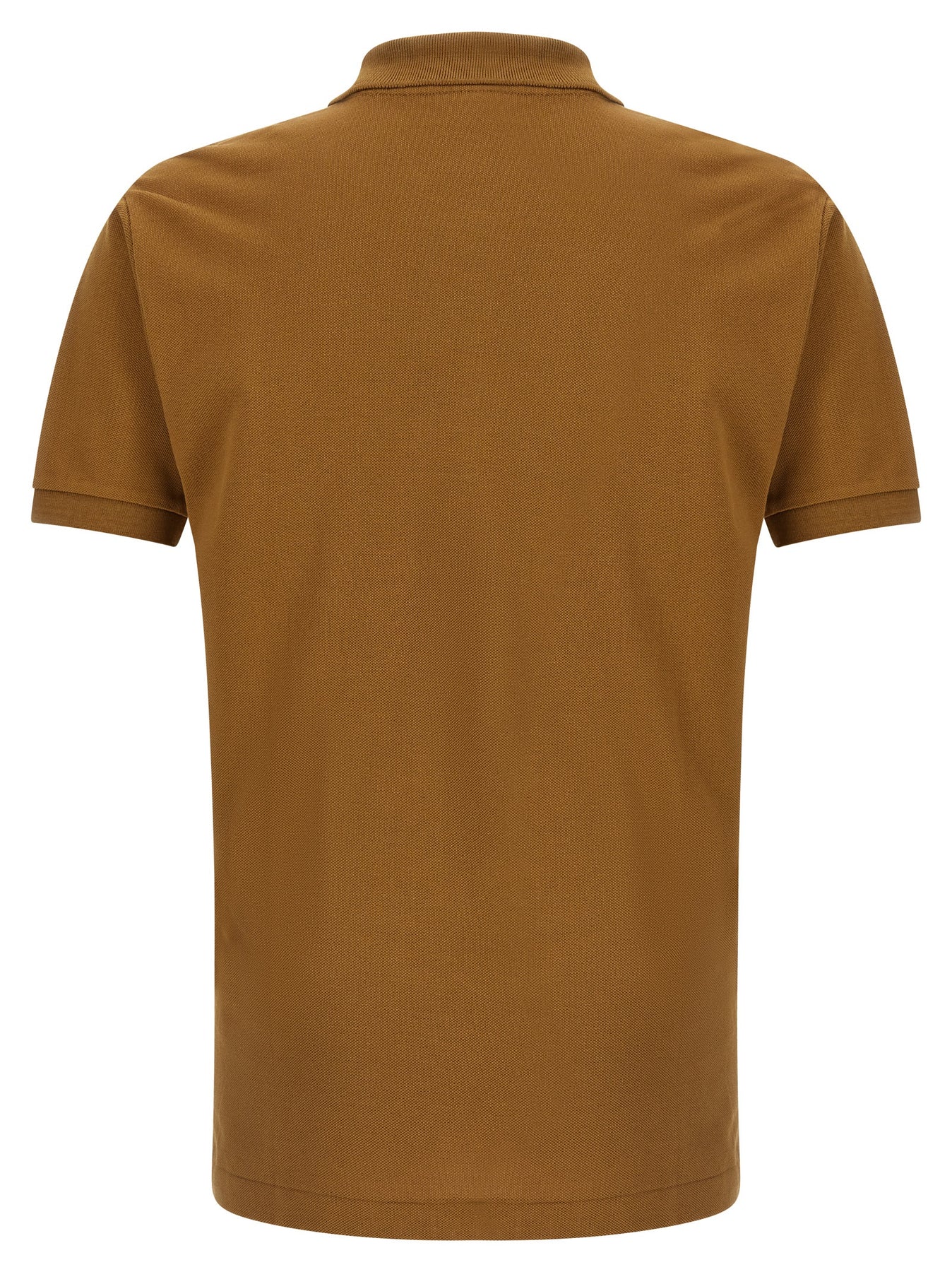 Cotton piqué polo shirt, front logo patch, collar and buttons, short sleeves, side vents.