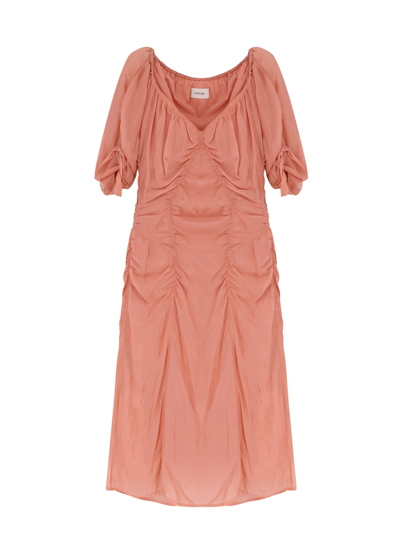 SKU: DR1098LF1373_RE316 - Closure with hidden side zip v-neckline short sleeve with draperies lined 100% silk