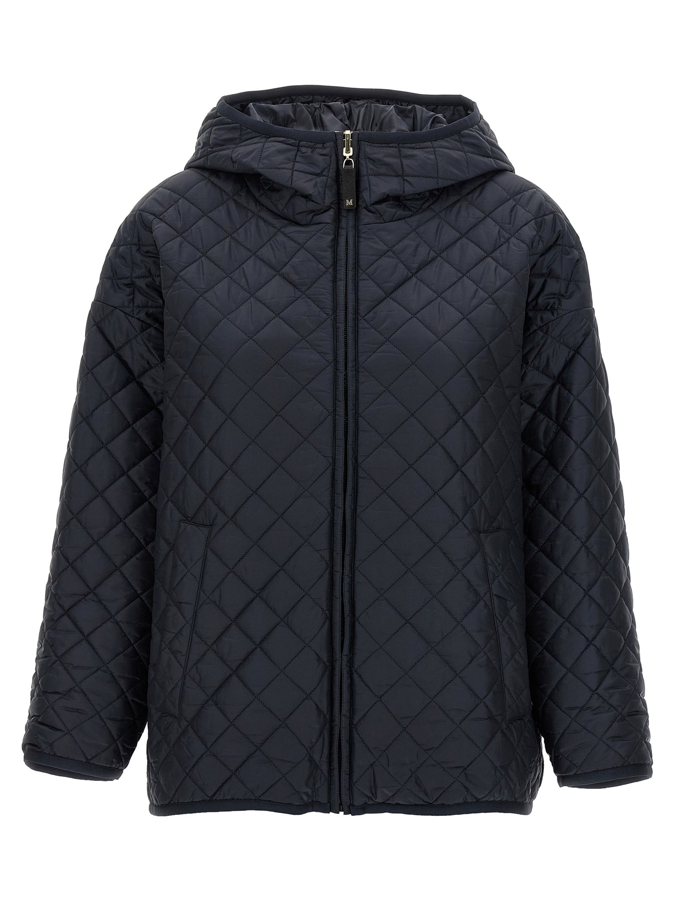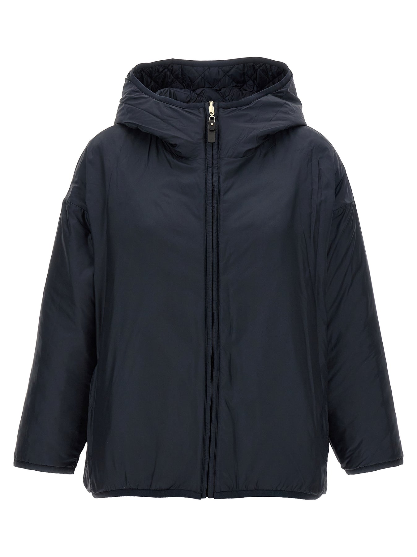 'Leo' reversible jacket in waterproof canvas with Cameluxe quilted diamond-shaped on one side and smooth on the other, hood, front zip closure, pockets, long sleeves with dropped shoulders, slightly asymmetrical hem.