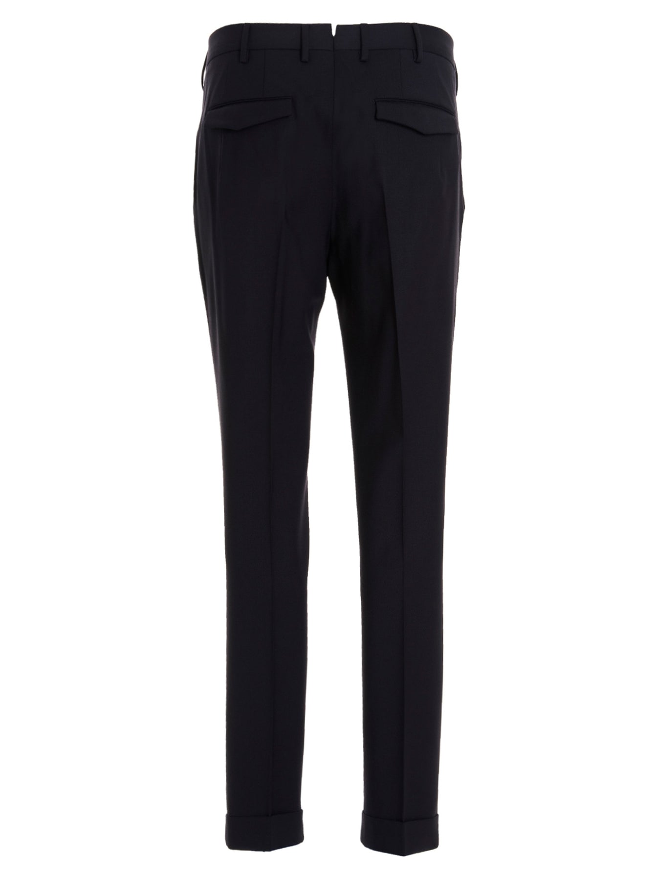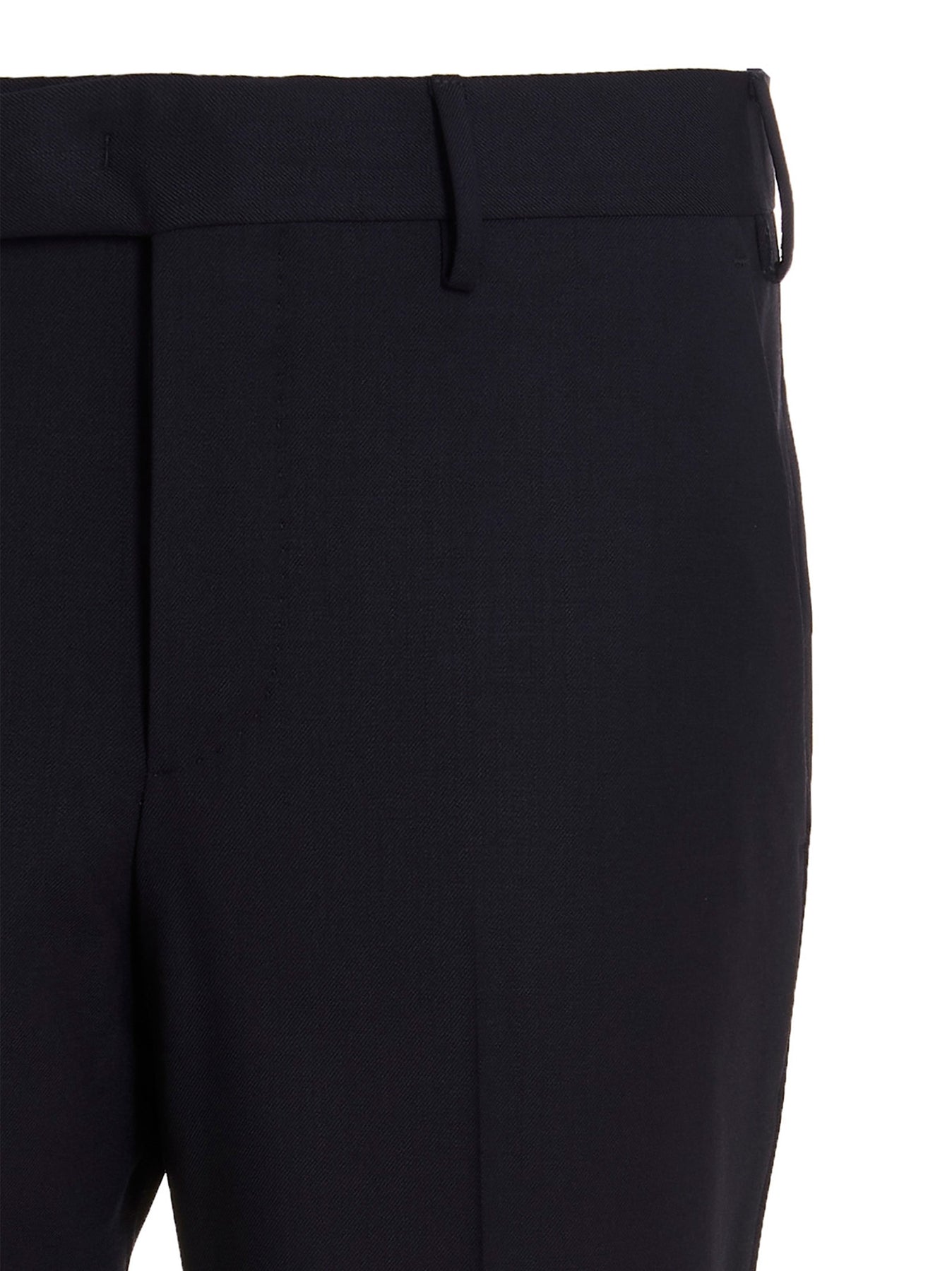 'Master' pants in stretch 350gr batavia wool, hook and button zip closure, pockets, leg with central crease.