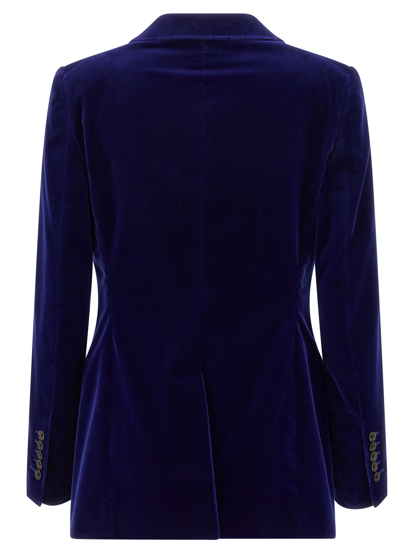 Single-breasted velvet 'Wallis' blazer with front button closure, peak lapels, chest pocket, flap pockets, long sleeves, structured shoulder strap, back split, lining.