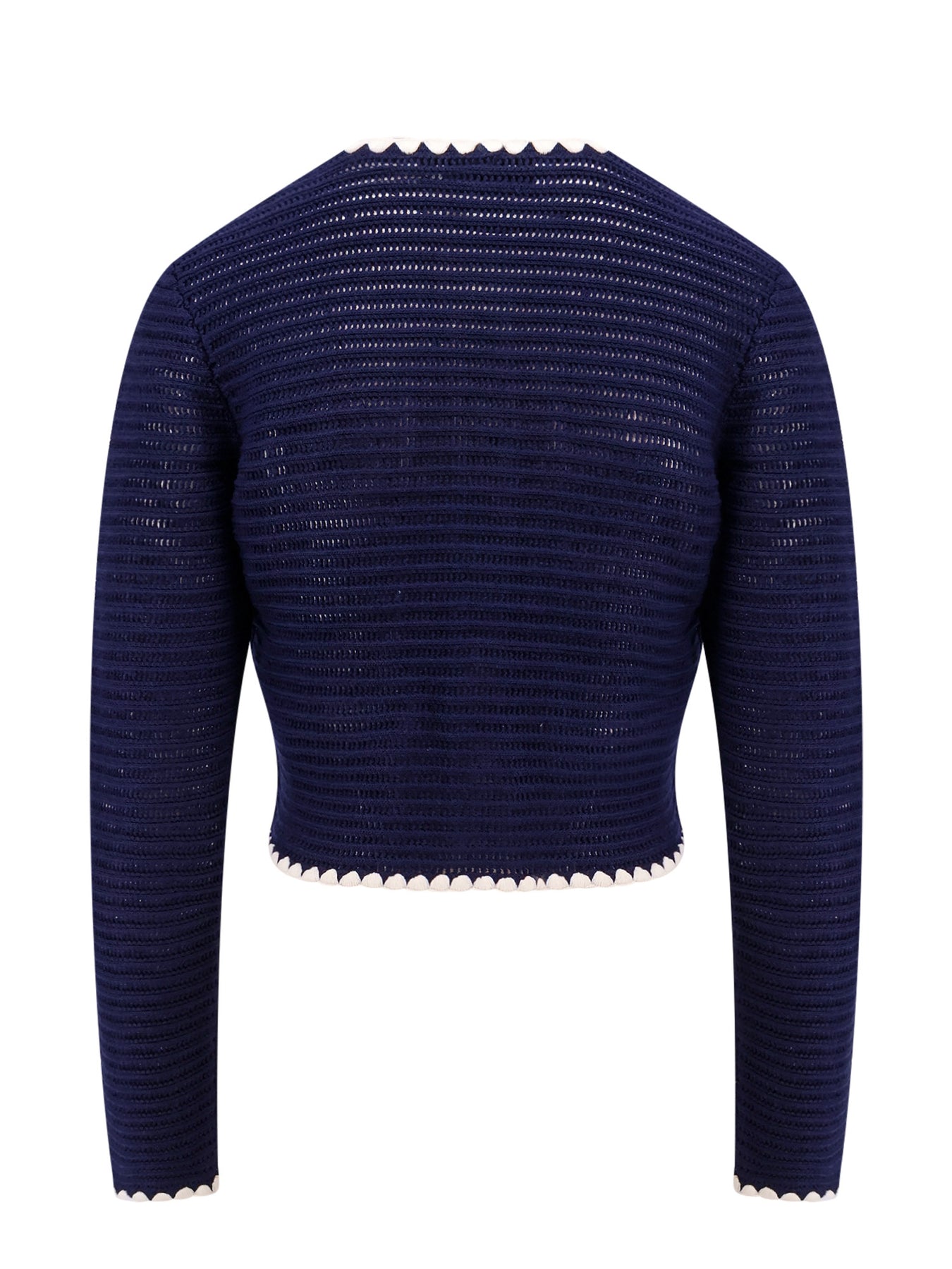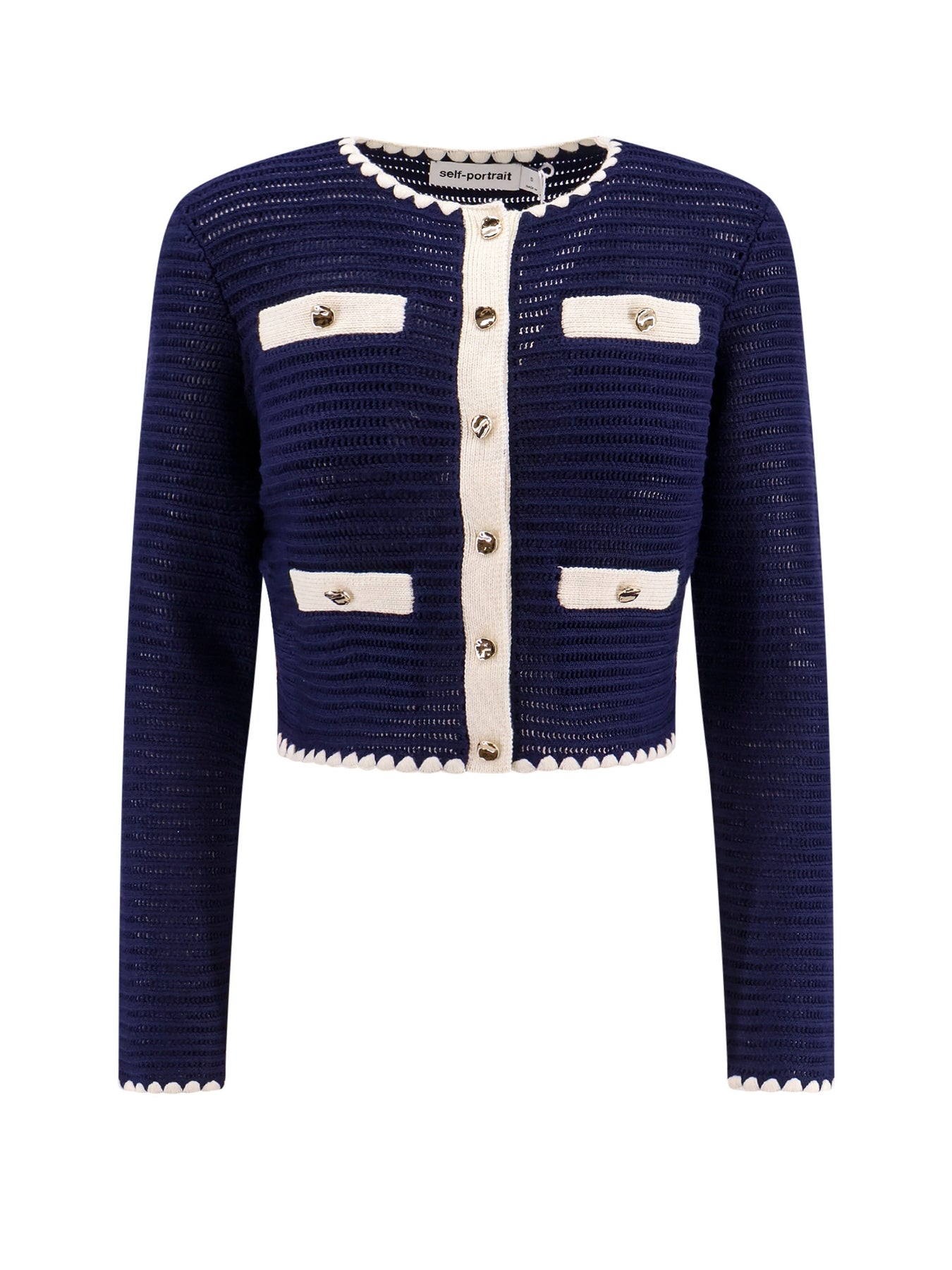 SKU: PF24131JBL_NAVY - Crew-neck with embroidery long sleeve with contrasting embroidery closure with metal buttons four pockets with button and contrasting profile on the front 45% cotton 41% viscose 10% polyamide 4% cashmere