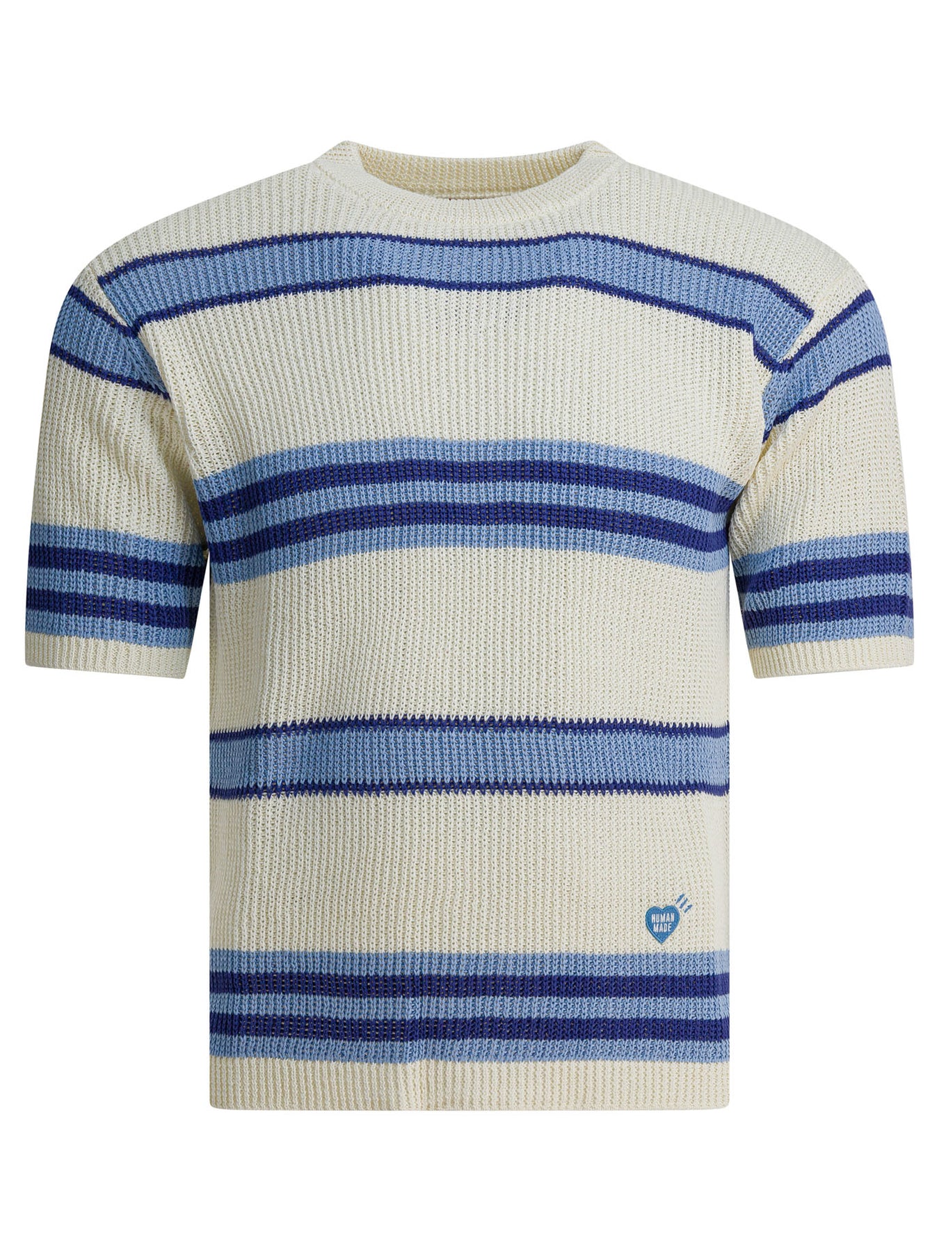 Human Made short-sleeved jersey made of lightweight knit, featuring a compact construction and defined details. The structure features a straight line with regular shoulders and balanced volume. The collar is ribbed and the short sleeves are finished with even weave. The main material is cotton, selected for stability, breathability and soft support on the skin. Precise profiling completes the overall finish. || - Striped - Short sleeves - Ribbed collar - Regular fit