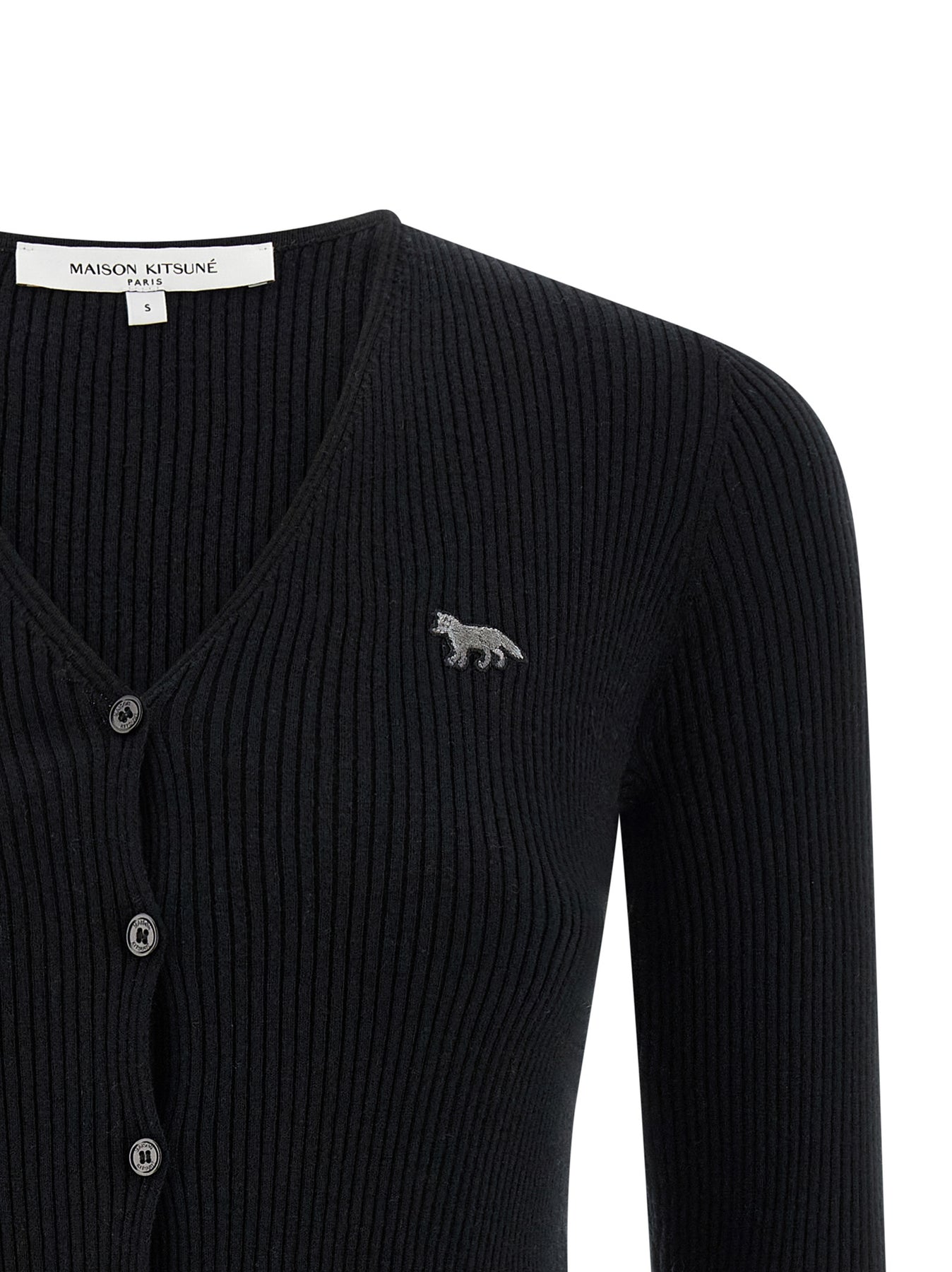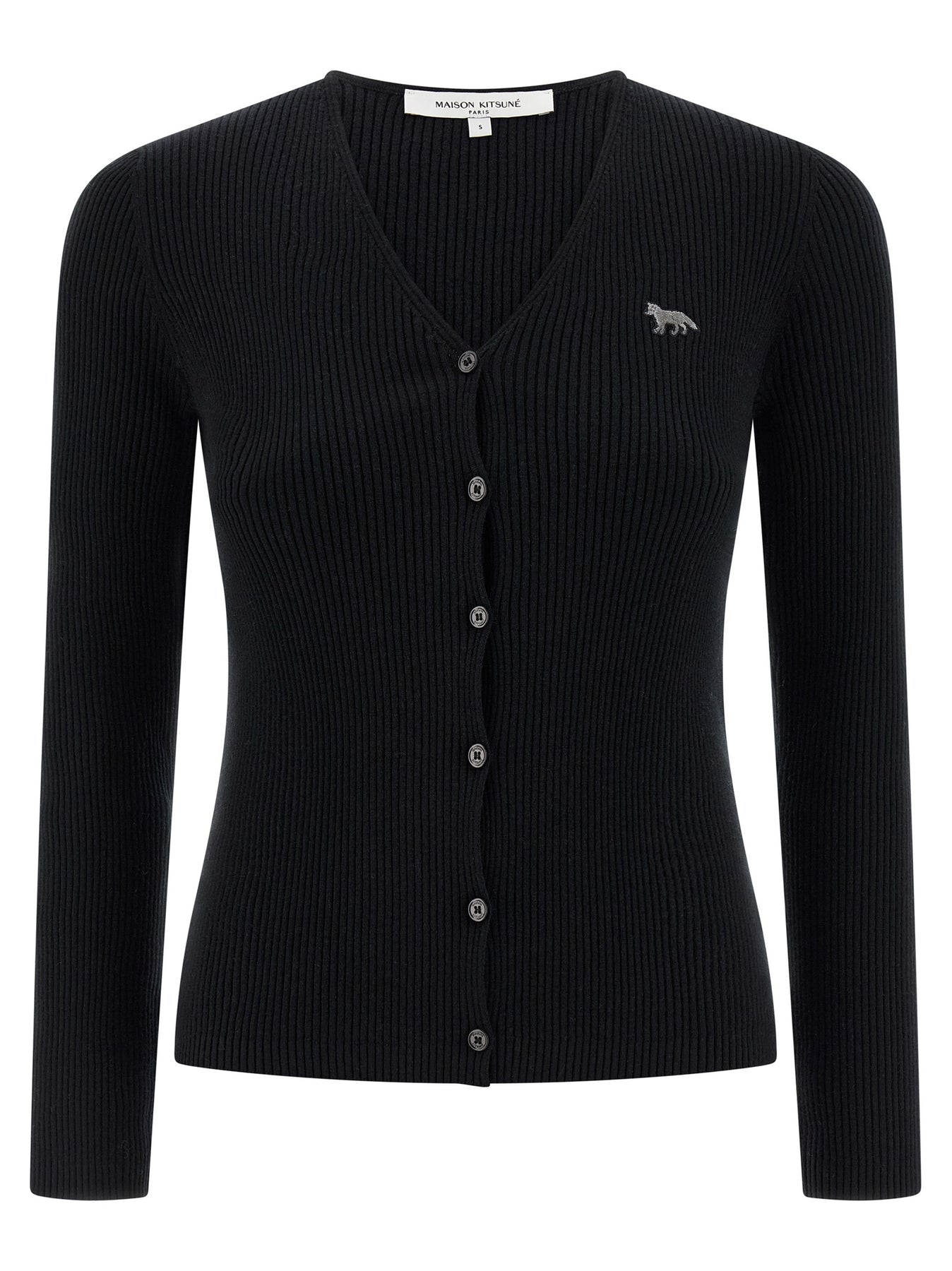 Lightweight cardigan in extrafine merino wool and ribbed cotton, 'Baby Fox' patch and front button closure, V-neck, long sleeves.