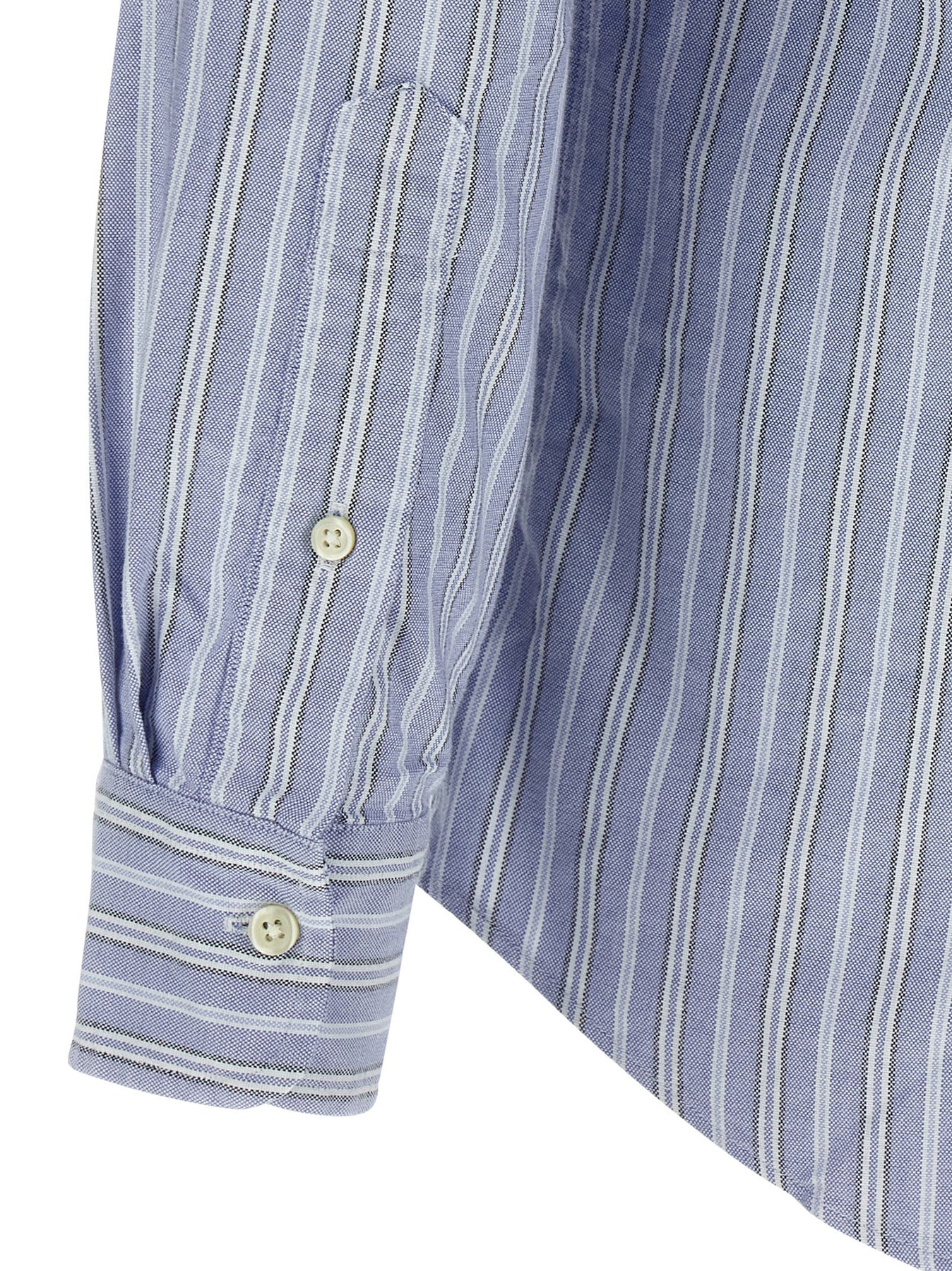 Oxford striped cotton shirt, with logo embroidery, front button closure, long cuffed sleeves.