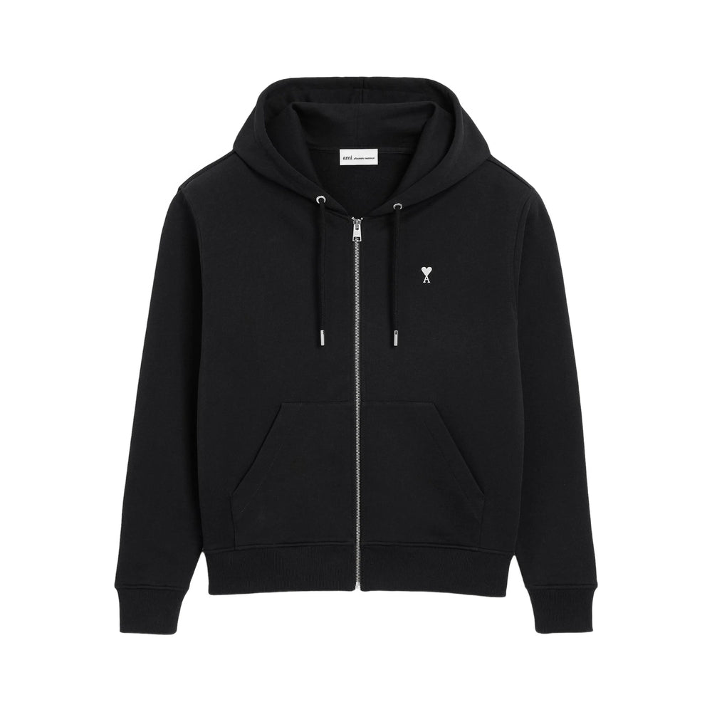 black white heart embroidery zip fastening hooded