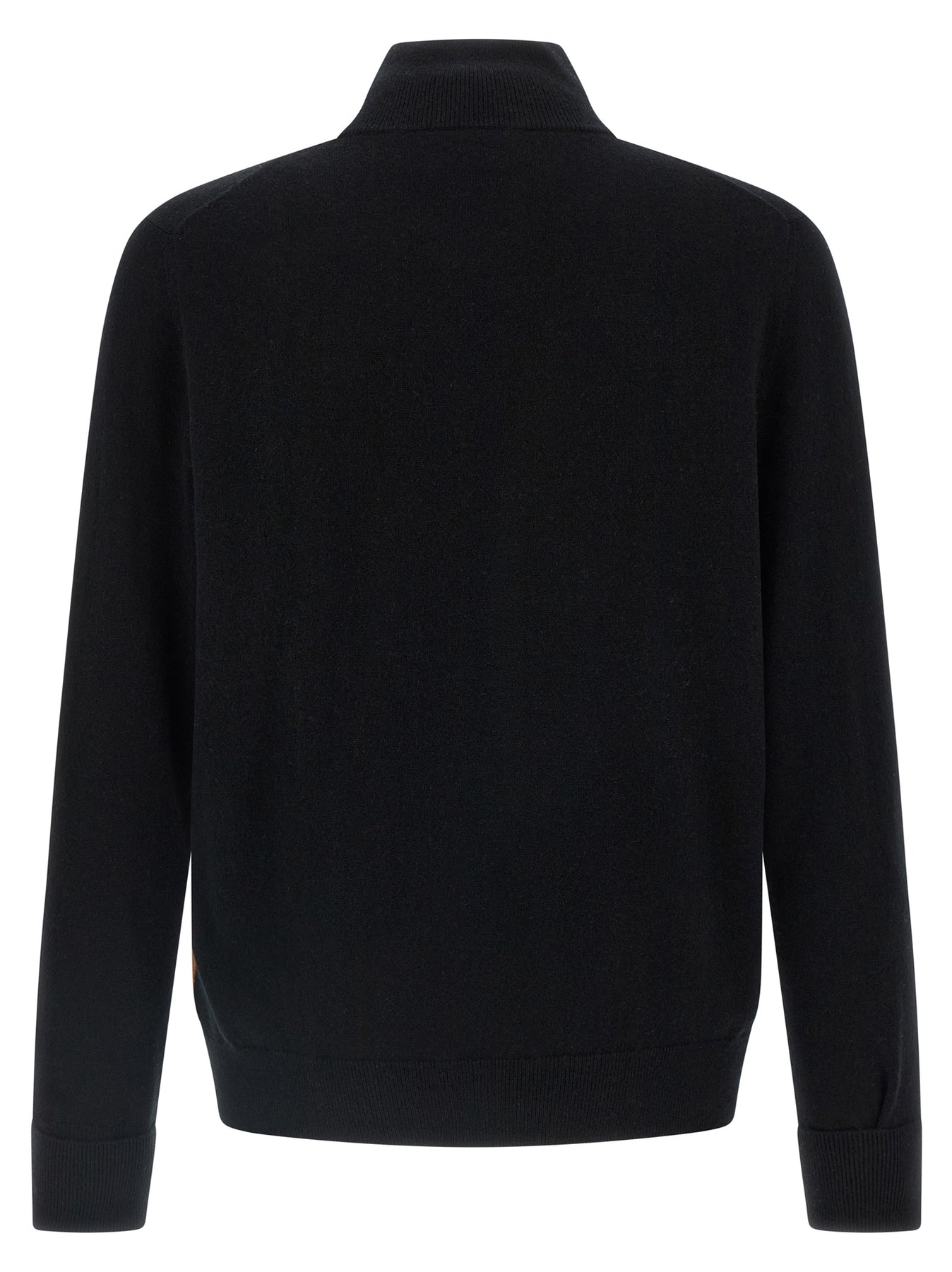 Cashmere cardigan with Argyle pattern on the front, high neck, zip closure, long sleeves with turned-up cuffs.