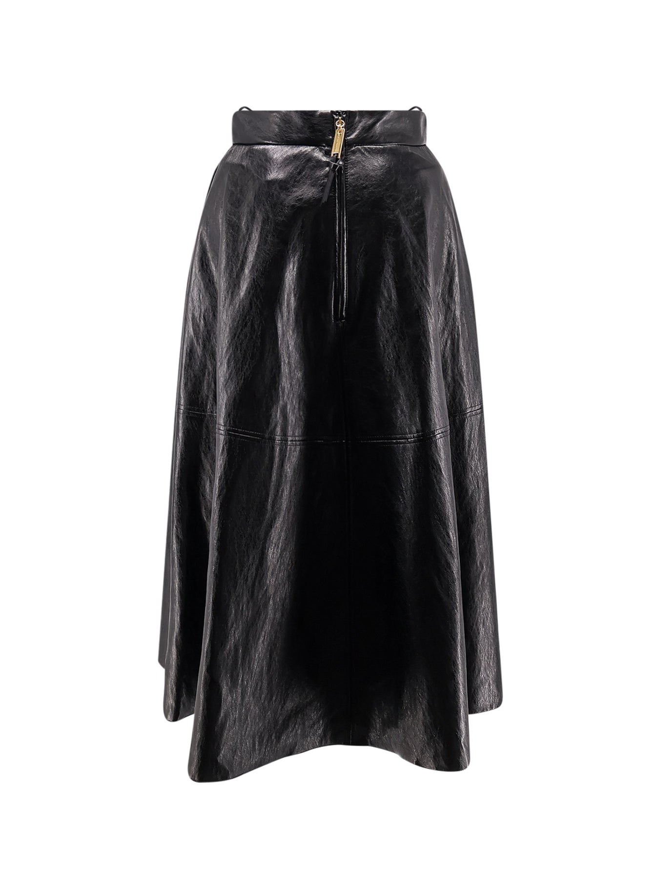 High-waisted Back zip closure Metal monogram details Made in Italy 69% viscose, 14% polyester, 11% cotton, 6% metal Lining: 97% polyester, 3% elastane SKU: GO13656E2110