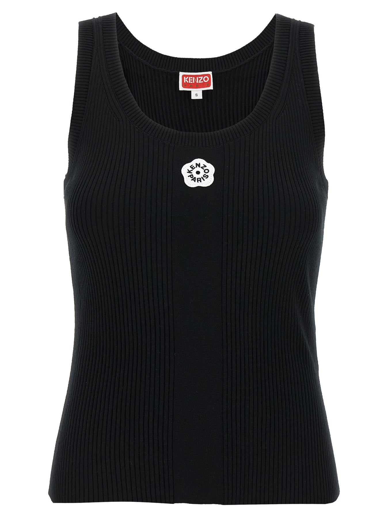 'Boke Flower 2.0' ribbed viscose top with round neckline, front logo patch, sleeveless.