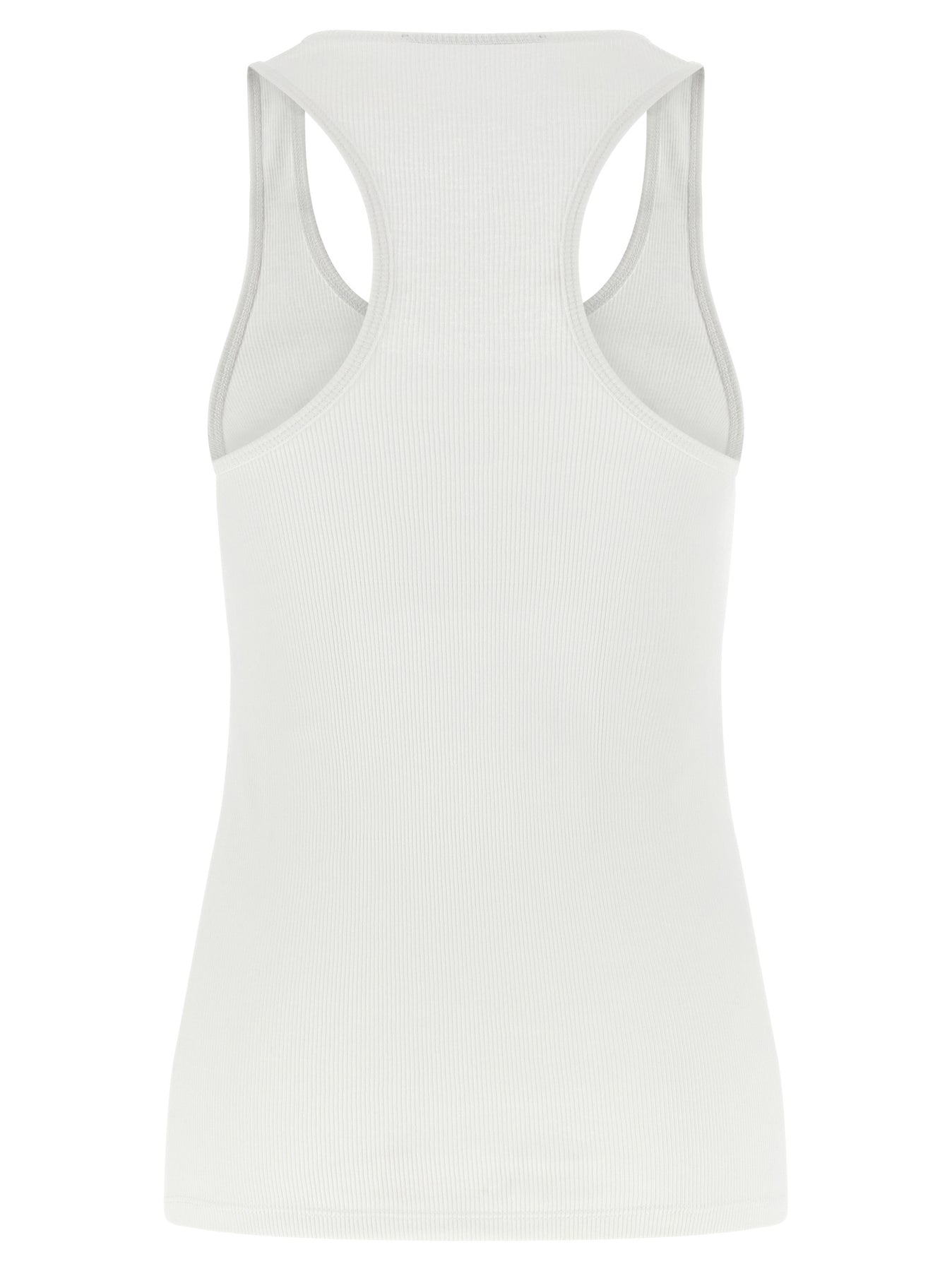 Sleeveless top in stretch cotton with round neckline, front 'Hardcore' slogan print.