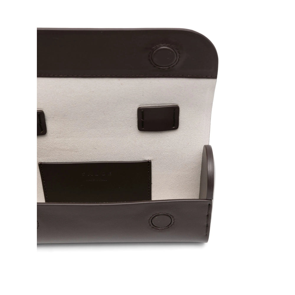 chocolate brown circular top handle detachable shoulder strap foldover top with magnetic fastening internal slip pocket