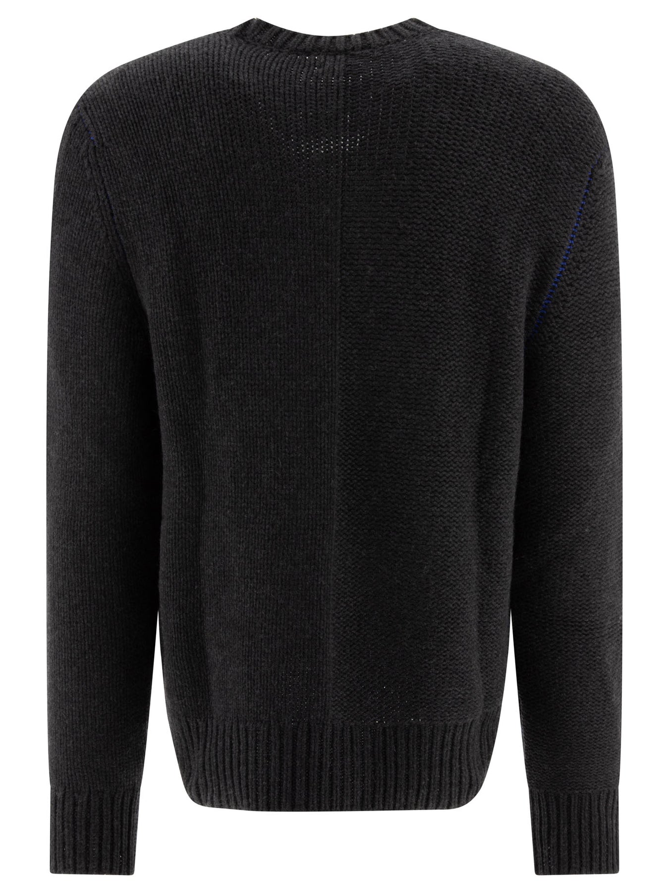 The Burberry cashmere sweater represents the perfect blend of elegance and comfort. Its solid color and classic design make it a versatile garment, an essential for every man's wardrobe. Ideal for those looking for a sophisticated style without sacrificing the warmth and softness of cashmere, it is suitable for both formal occasions and relaxed moments. || - Regular fit - Ribbed collar, hem and cuffs - Long sleeves - Crew neck - Blue contrast stitching detail on armholes || Perfect to pair with chino pants and a button-down shirt for a refined look. You can complete the outfit with a tailored jacket and a leather belt for an extra touch of elegance. Also ideal with jeans and sneakers for a casual yet stylish look.