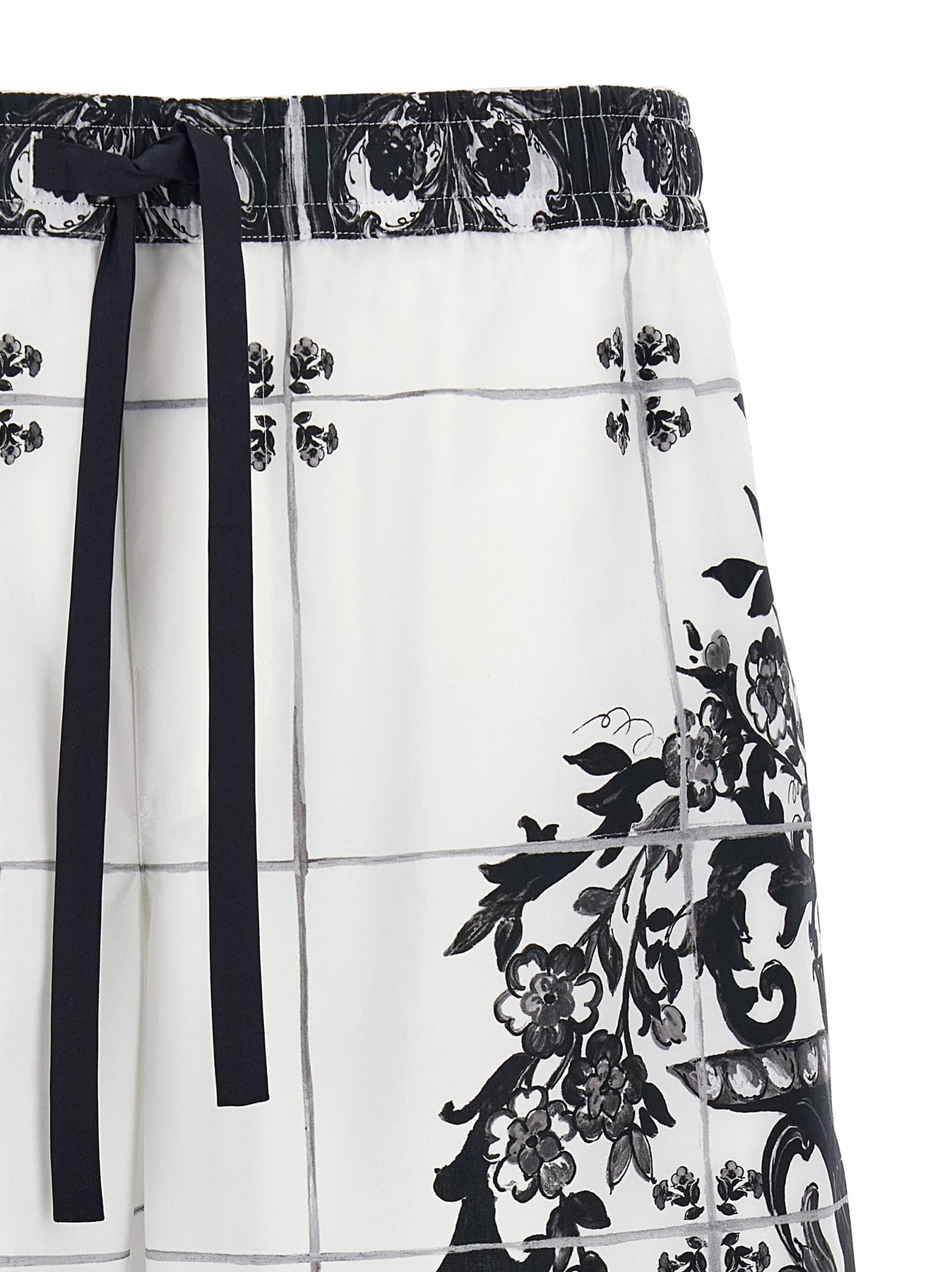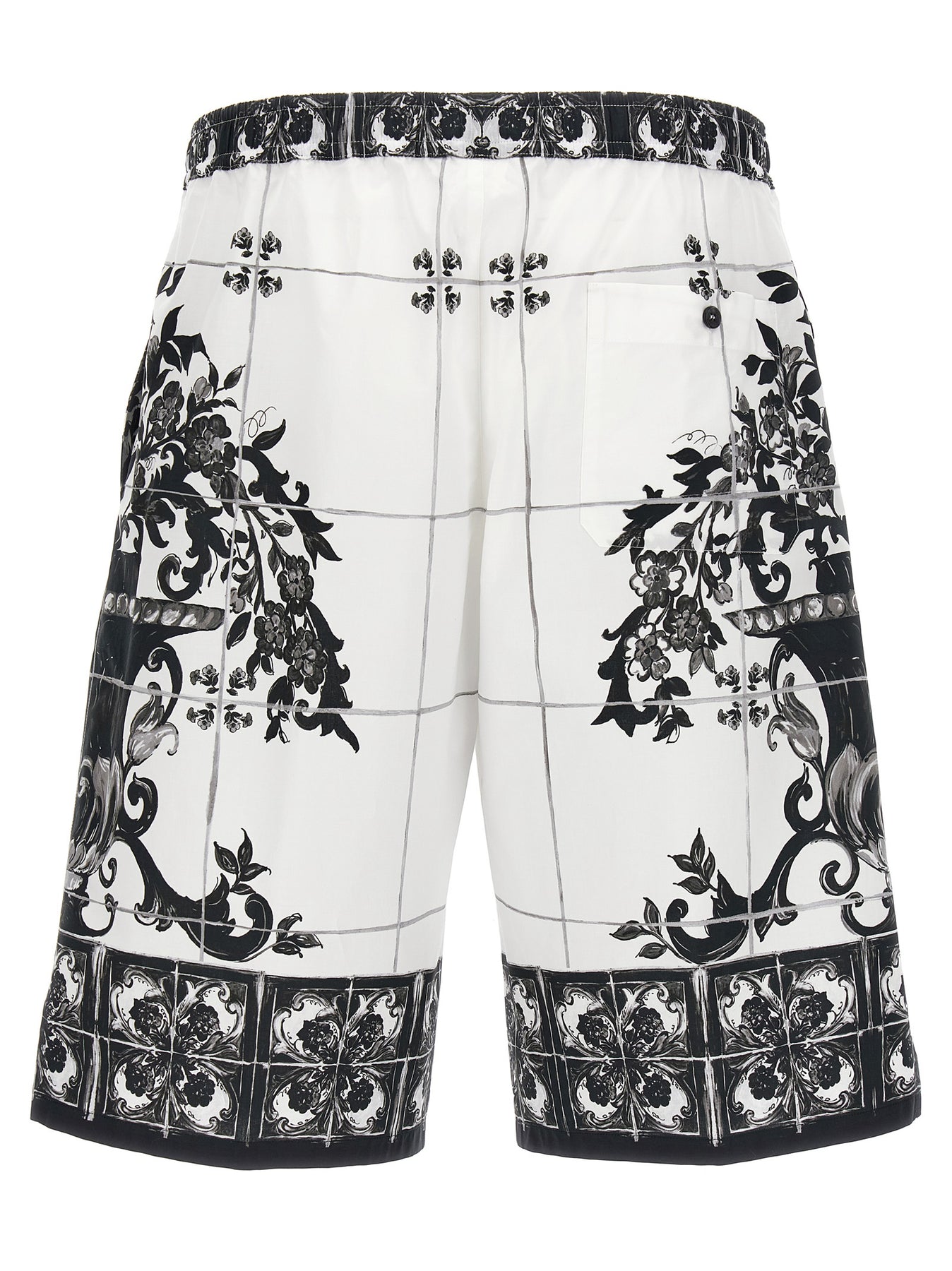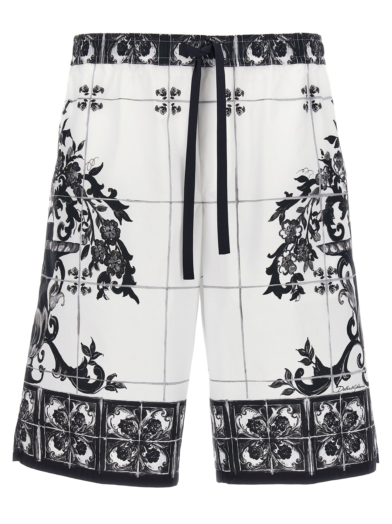 'Maiolica' print cotton poplin bermuda shorts, adjustable drawstring elastic waistband, trompe l'oeil flap, pockets, slits on the leg bottom. The differences in print placement you might find on this product is a characteristic of Dolce&Gabbana's Handmade products. A peculiarity that makes each garment or accessory unique and exclusive.