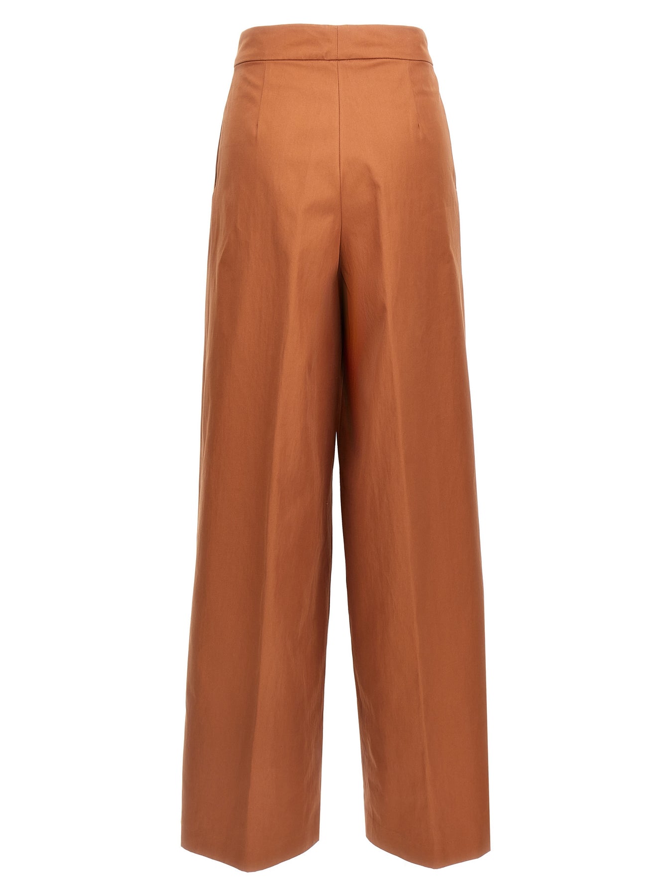 'Pamplona' cotton pants with wide leg and front and back pleats, zip and button closure, pockets.