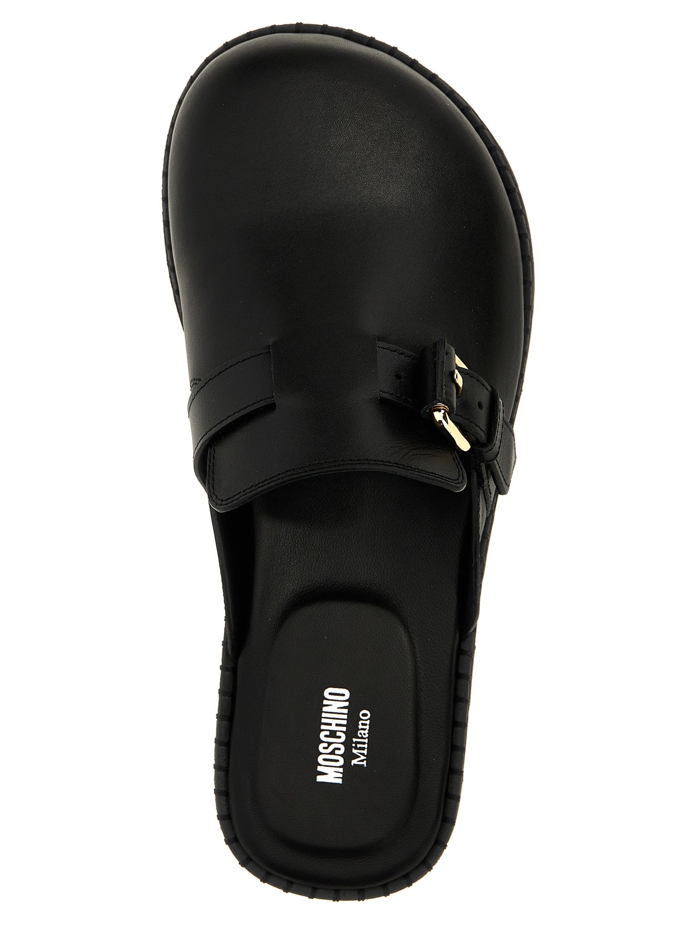 'Birky' leather sabots, adjustable strap, metal details, rubber sole.