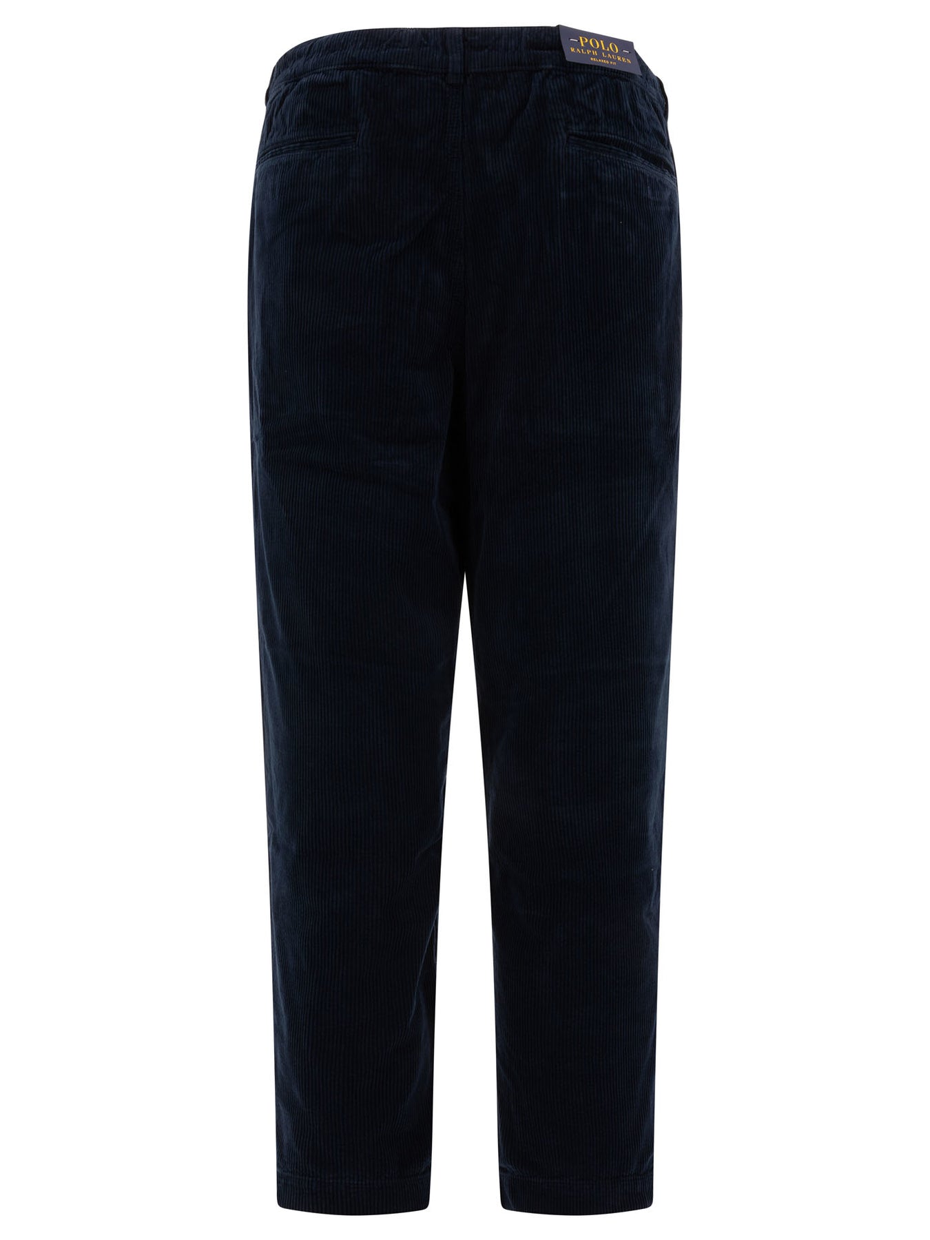Polo Ralph Lauren's Corduroy Trousers with Pleats embody casual elegance with a touch of sophistication. Perfect for the modern man who seeks comfort without compromising style, these pants easily adapt to a variety of occasions, ensuring a flawless look every time. || - Belt loops - Waistband with internal drawstring - Elasticized band on the back waistband - Flap with zipper and button closure - Corozo button - Pleats at front - Two bias pockets on front - Two welt pockets on the back - Exclusive embroidered pony above the right back pocket