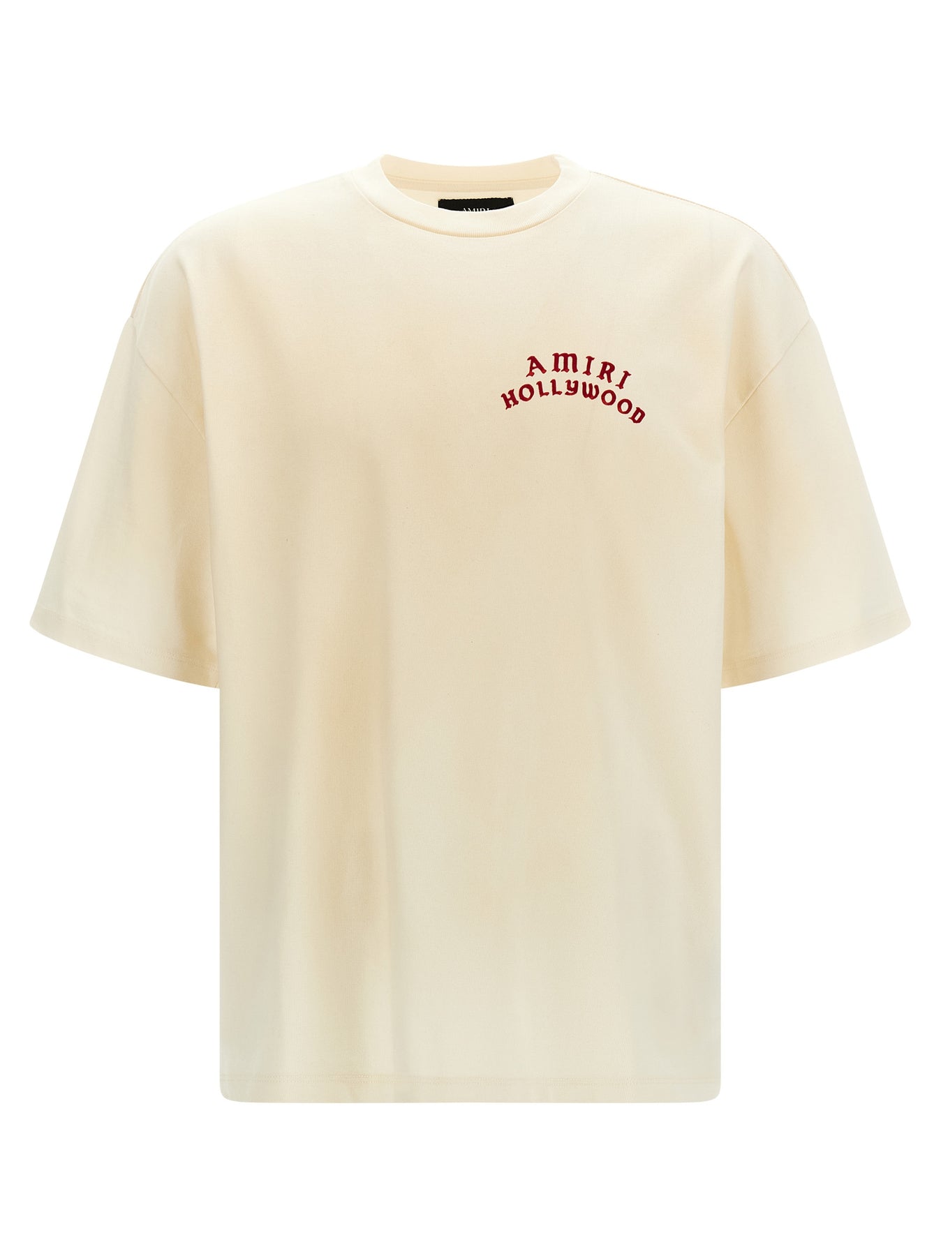 Cotton T-shirt with flocked 'Amiri Hollywood' print on the front and back, crew neck, short sleeves with dropped shoulders.
