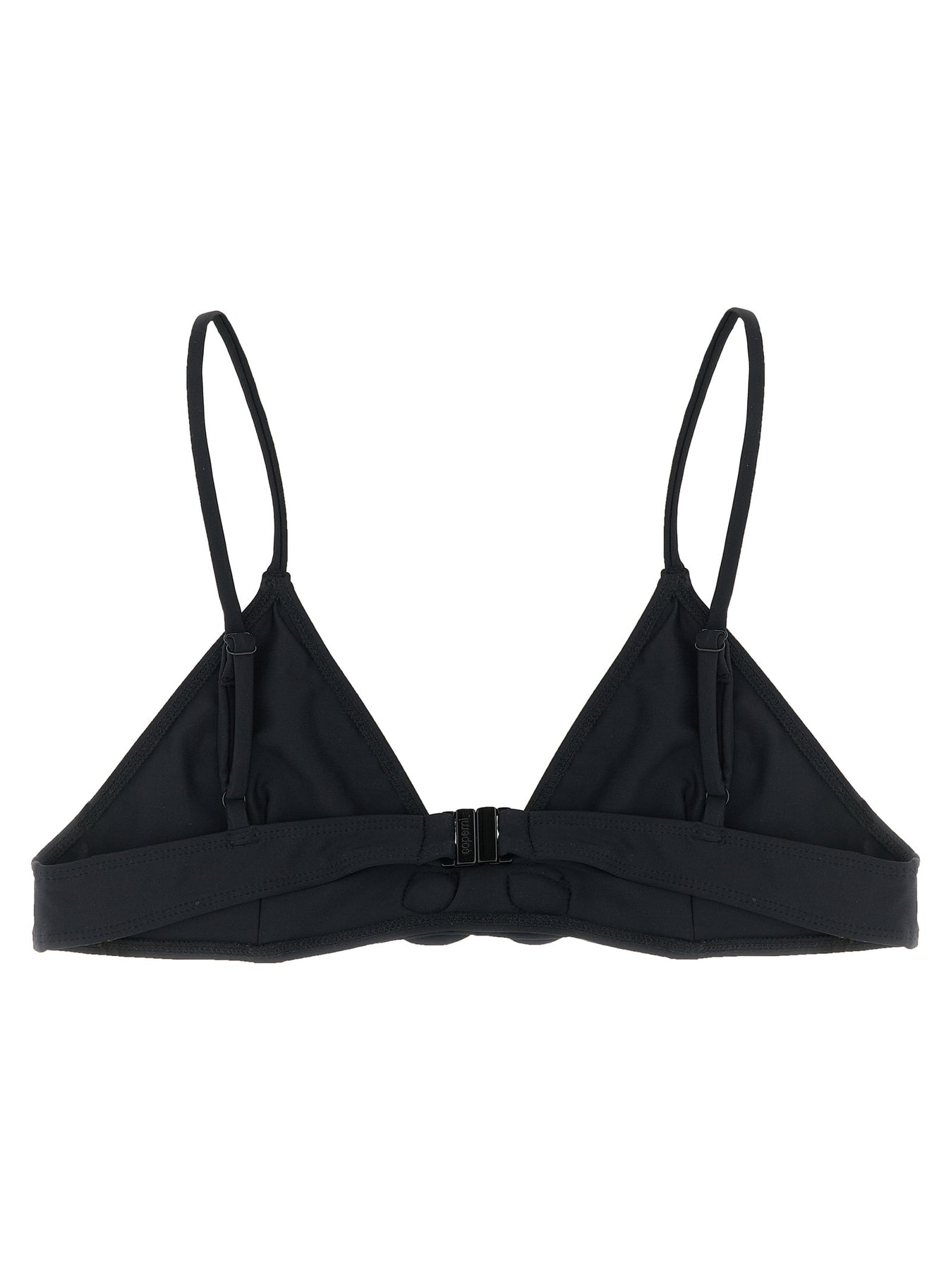 'Flower' triangle bikini top in technical fabric with pincer and central floral detail, thin adjustable straps, back hook closure.