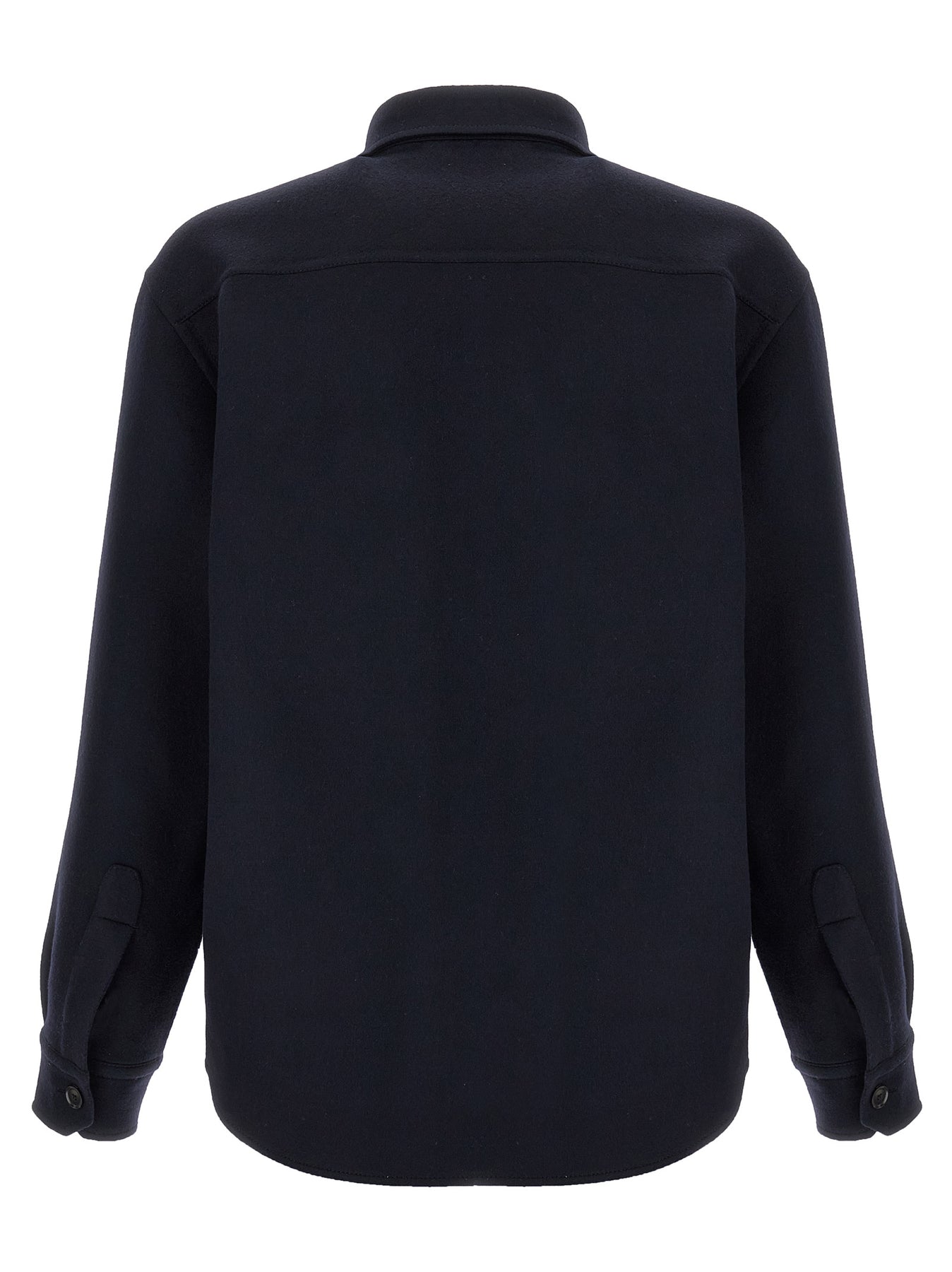 'Vagabond' overshirt in heavy wool and cashmere cloth, front button closure, pockets, long cuffed sleeves, unlined.