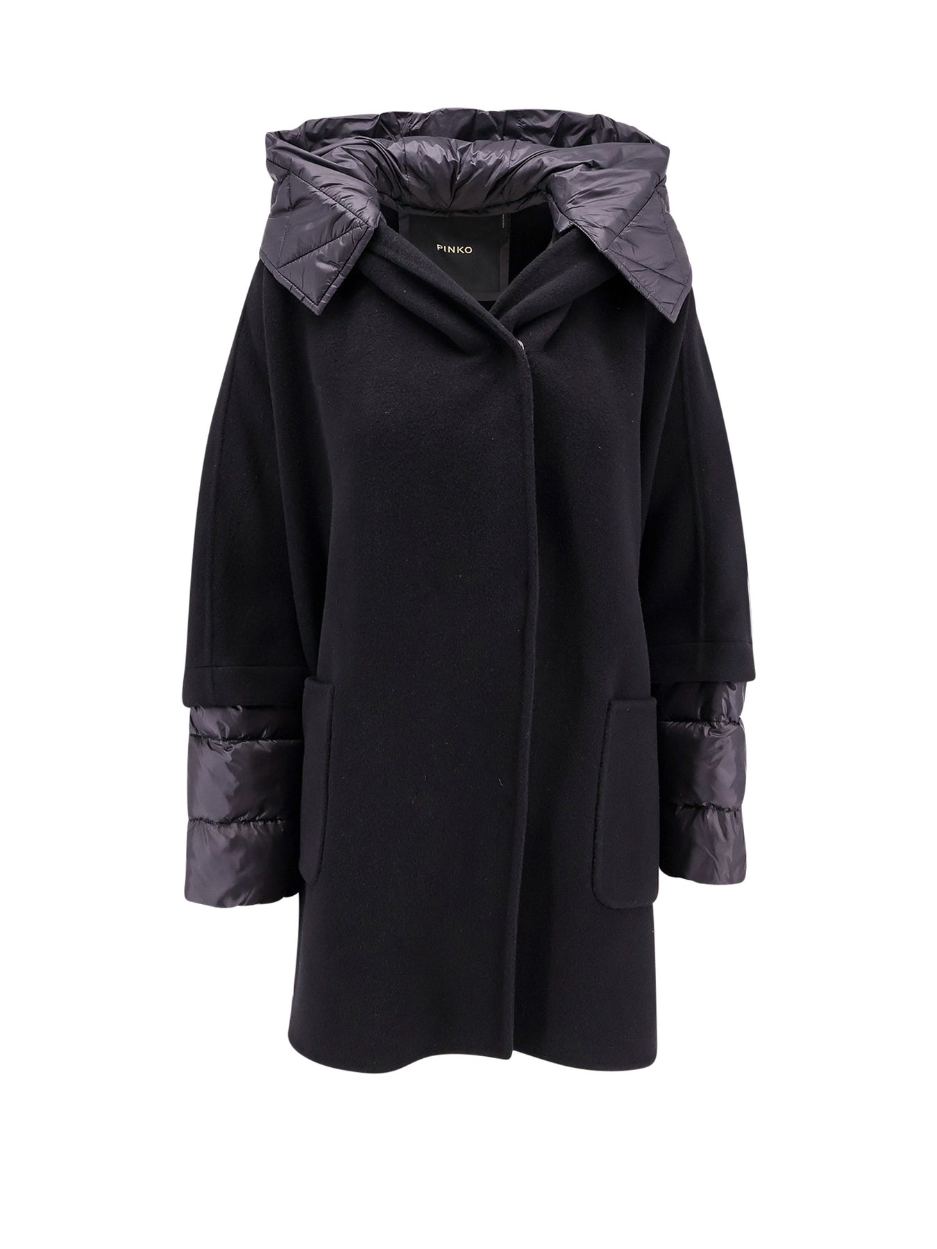 SKU: 103840A1ZP_Z99 - Removable hood with zip closure with snap buttons frontal pockets lateral slits with buttons 100% wool