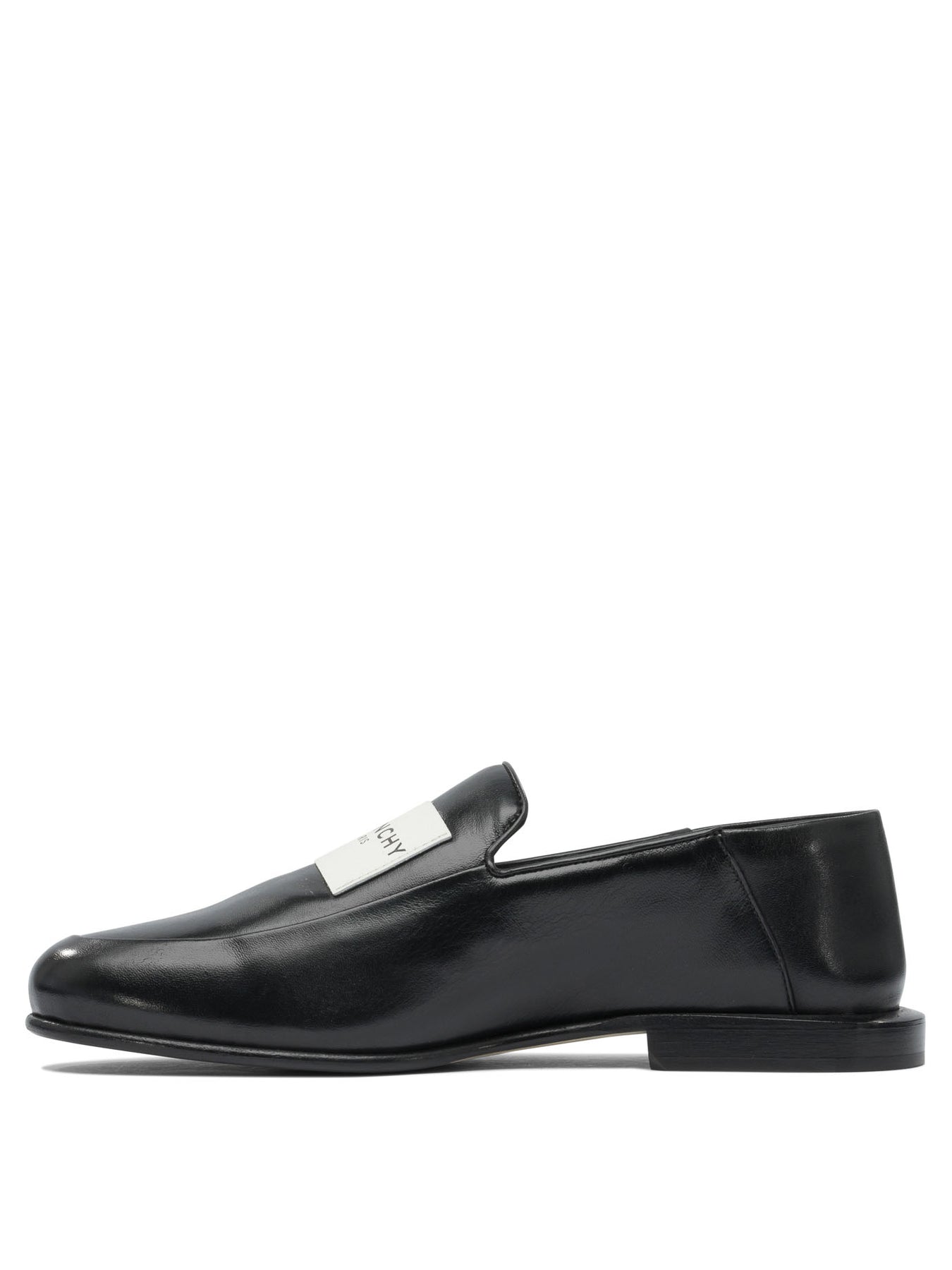 Givenchy's "Label" loafers represent a perfect balance between comfort and style. Made for the modern woman, these loafers are designed to adapt to different situations and looks. Refined in their simplicity, they offer a versatile aesthetic, ideal for those seeking a touch of everyday elegance. Their thoughtful design makes them perfect for both formal work settings and more casual wear, always ensuring a touch of class. || - Givenchy Paris label stitched on the upper - Leather insole with Givenchy signature stamped on it - Almond toe - Fold-over back for wearing as slippers