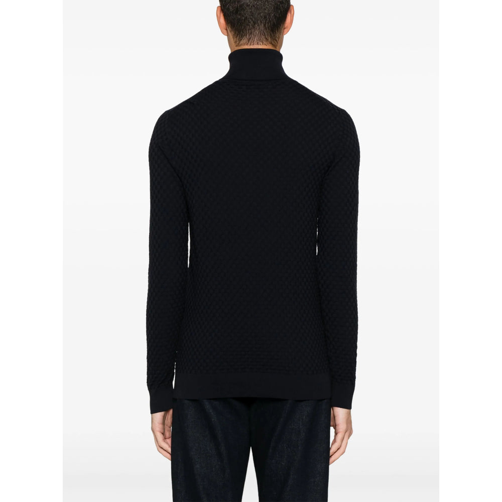 navy blue merino wool 3D-knit construction roll neck long sleeves ribbed cuffs and hem straight hem
