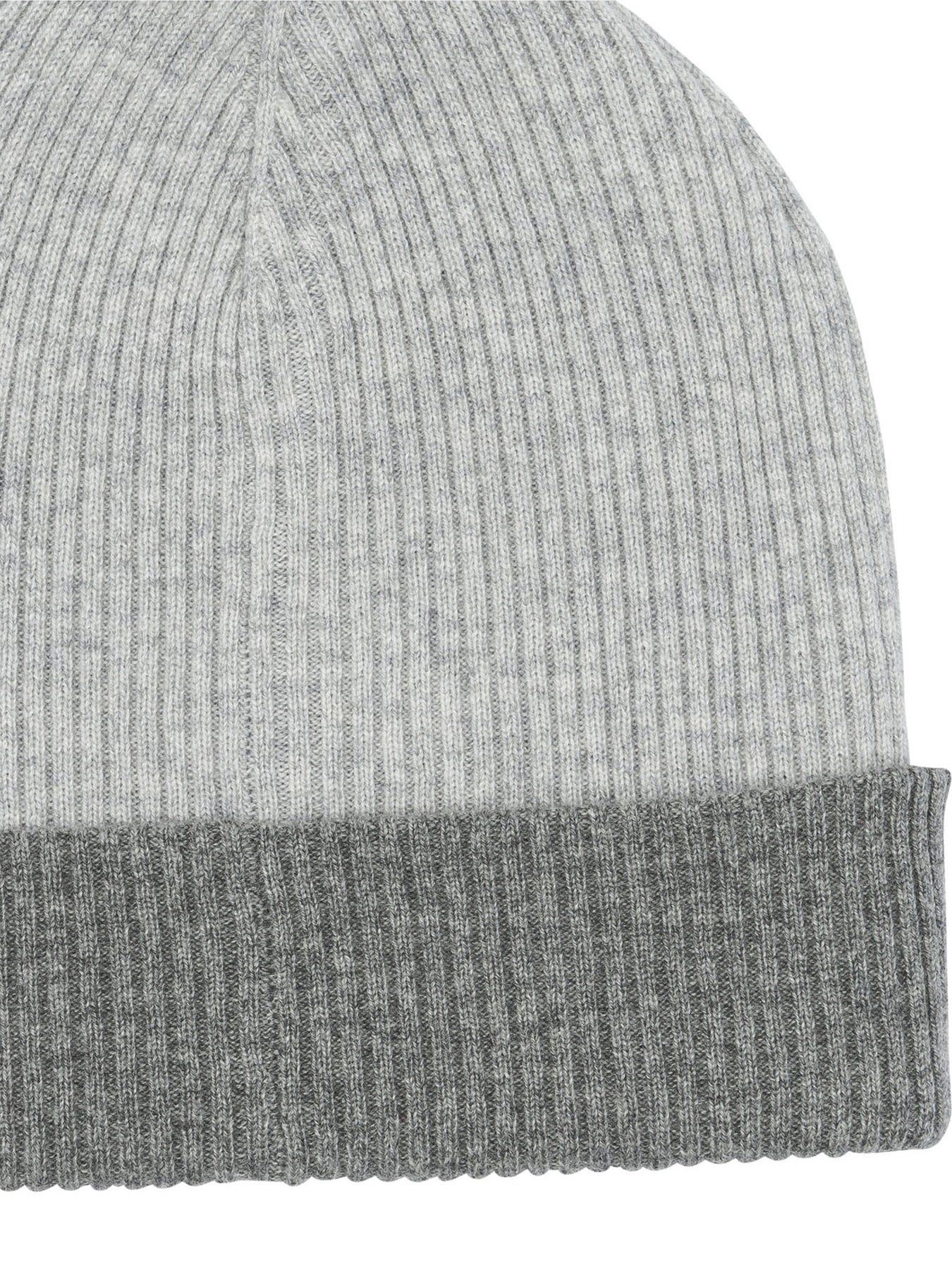 Brunello Cucinelli reversible cashmere beanie, made of ribbed double knit with cashmere yarn. The structure features a fitted and flexible silhouette, characterized by a double-layer construction that allows the cap to be worn on both sides. The uniform ribbed knit ensures elasticity and shape stability, offering a soft feel thanks to the all-cashmere composition. || - Ribbed double knit - 100% cashmere - Shaped and elastic silhouette