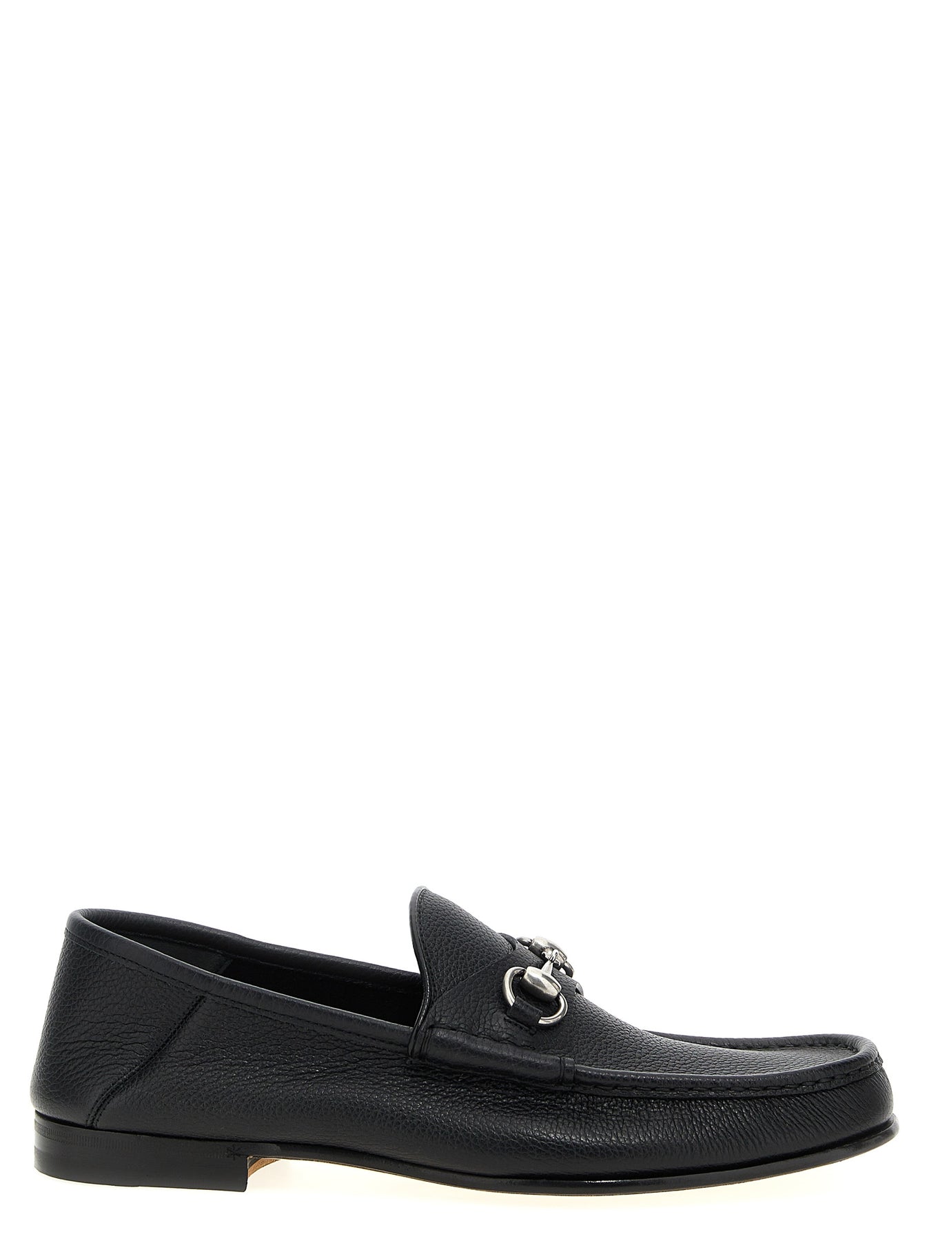 'Horsebit 1953' loafers in perforated GG leather, front metal clamp, leather sole, foldable heel.