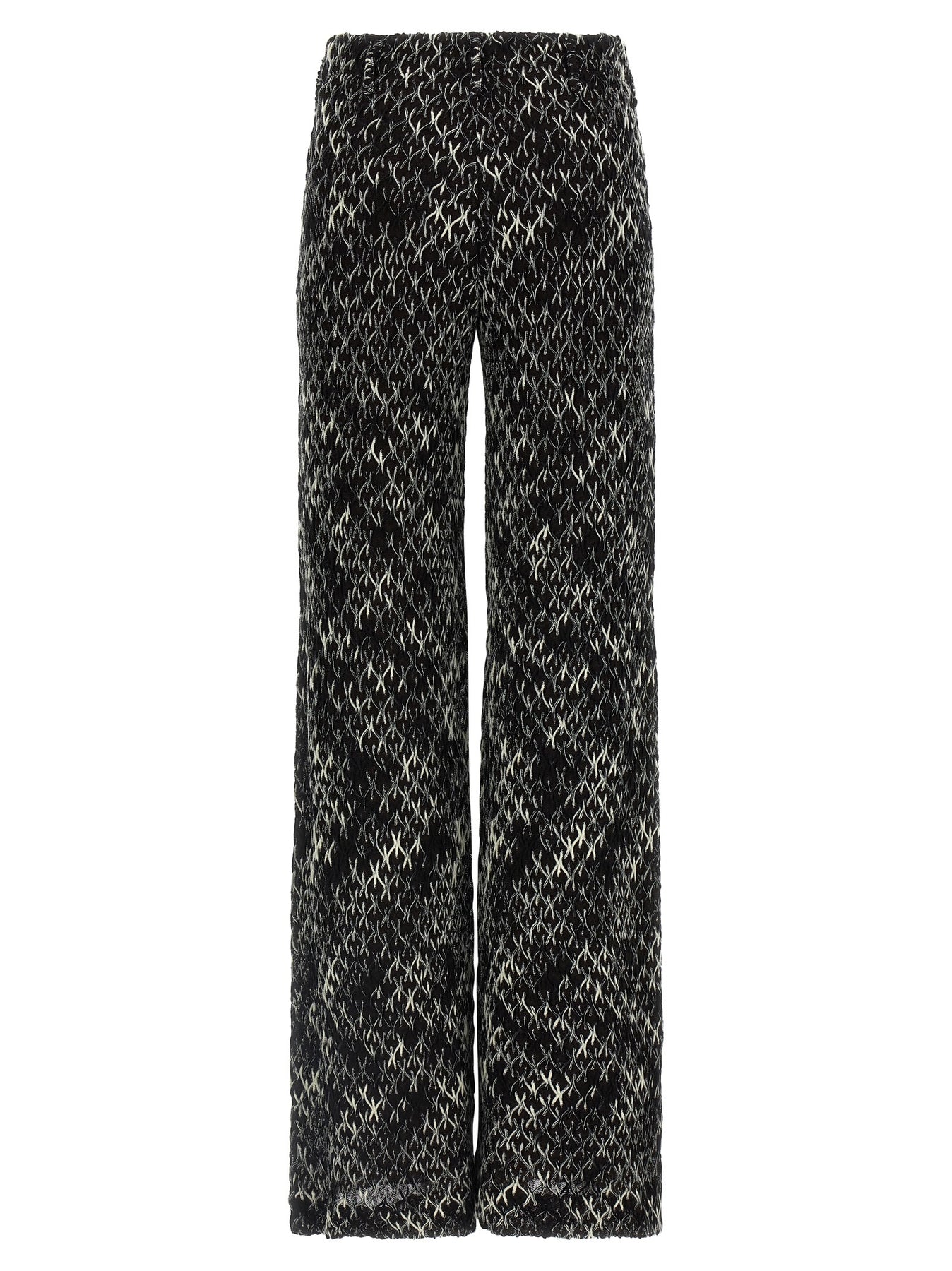 Ribbed lace pants flamed with wool and viscose, palace model, elastic waistband, lining.