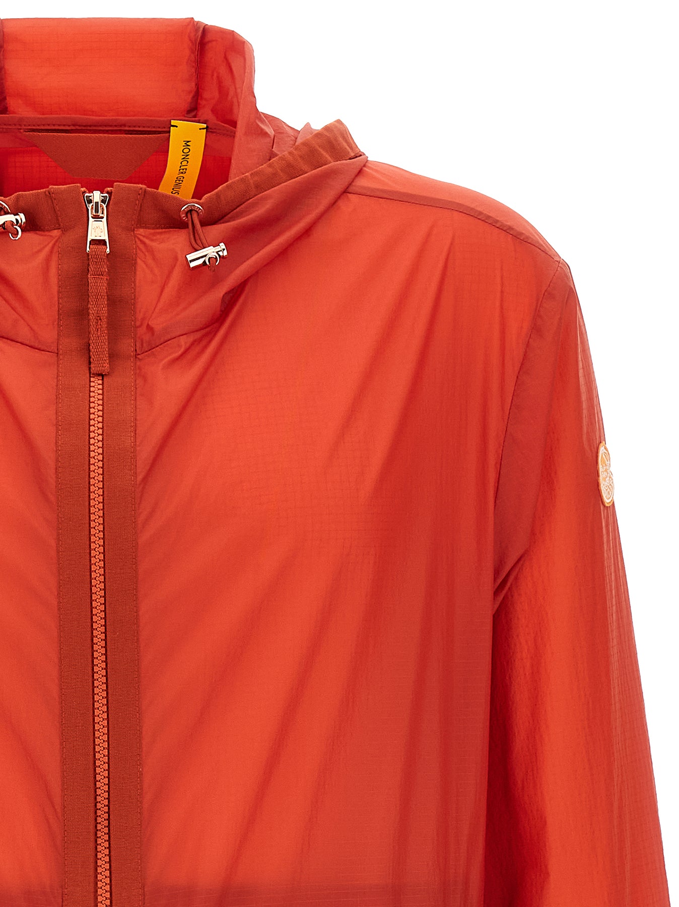 Donald Glover's Moncler x Gilga Farm 'Hamlin' windbreaker in lightweight technical fabric, adjustable hood, front zip closure, high neck, long sleeves with elastic cuffs and felt logo patch.