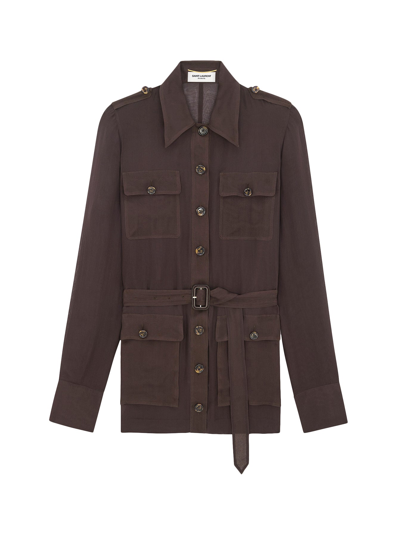 SKU: 778923Y065W_2178 - Pointed collar frontal closure with buttons four pockets on the front made in italy 100% biologic silk