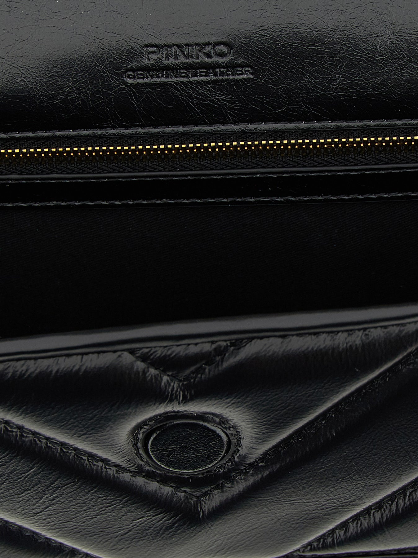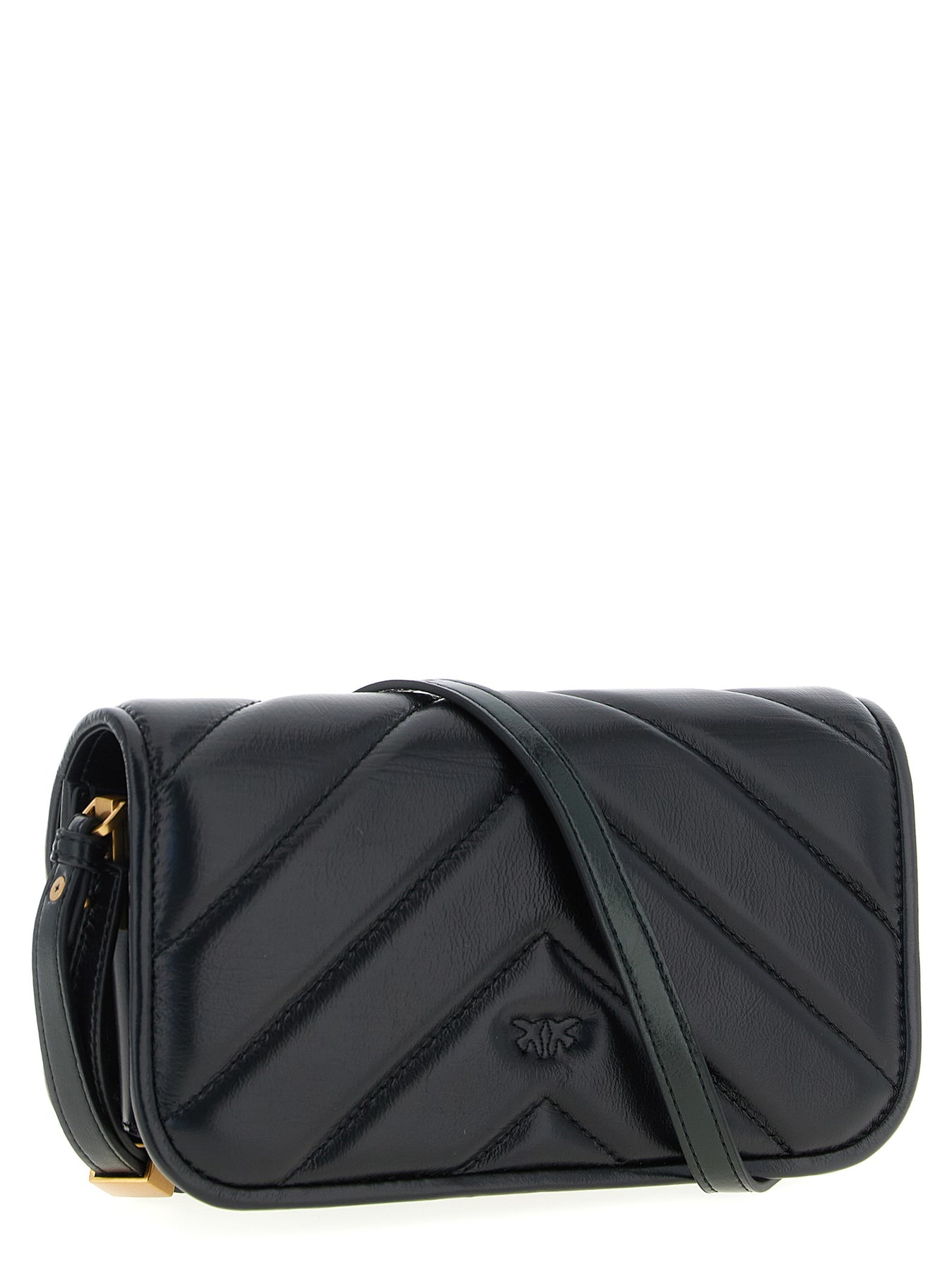 'Love Box Baguette' large shiny leather handbag with chevron quilting, rectangular silhouette, magnetic flap closure with front metal 'Love Birds Diamond Cut' logo, adjustable and removable leather shoulder strap, cotton drill lining.er strap, cotton drill lining.