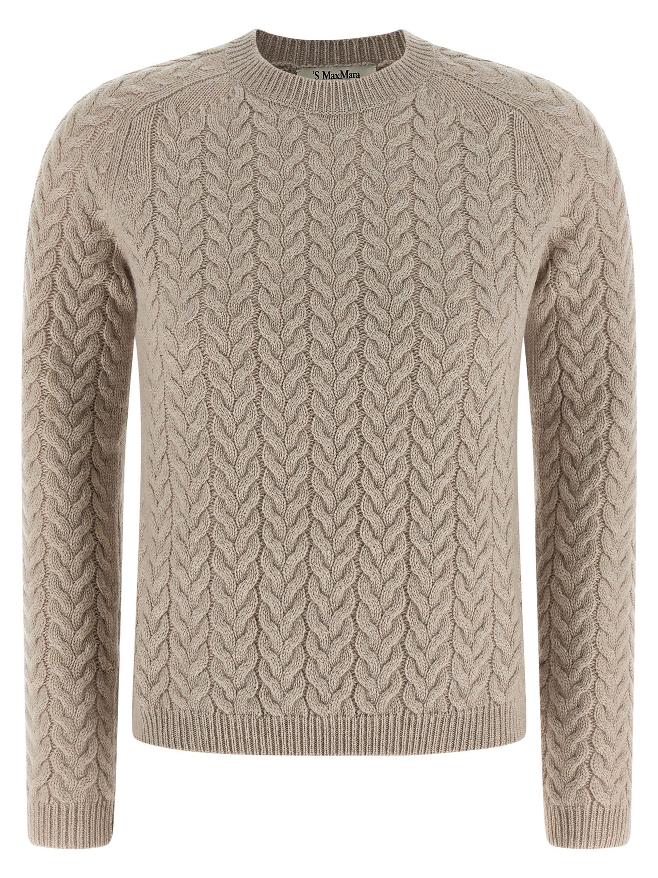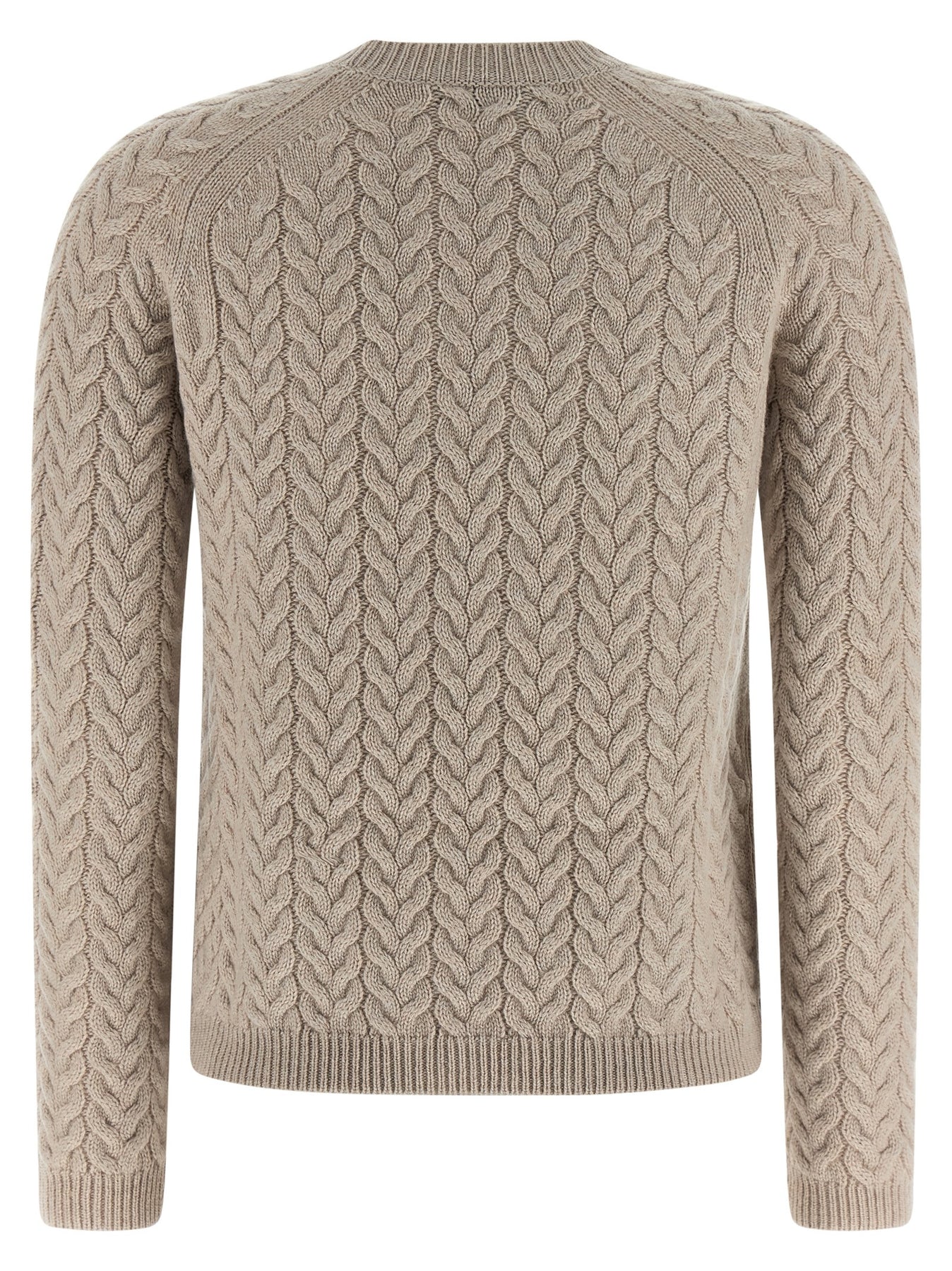 'Eliane' wool and cashmere sweater with braided knit, crew neck, long raglan sleeves with cuffs.