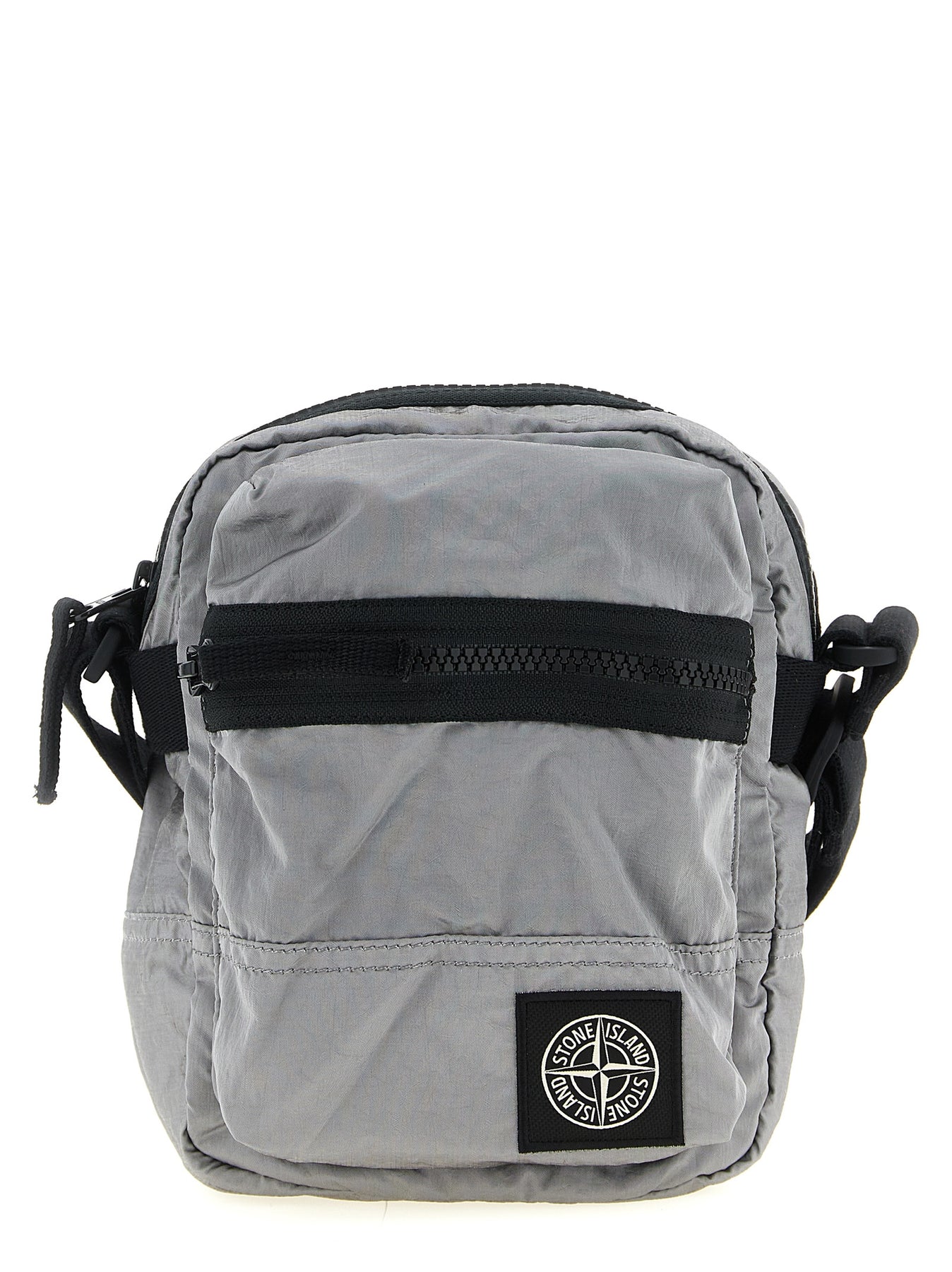 Garment-dyed Nylon Metal shoulder strap with wrinkled double color recipe, polyurethane lining, 'Compass' logo patch and front zip pocket, top zip closure, back pocket, adjustable shoulder strap. SUSTAINABLE: This product is made of ECONYL regenerated nylon.®