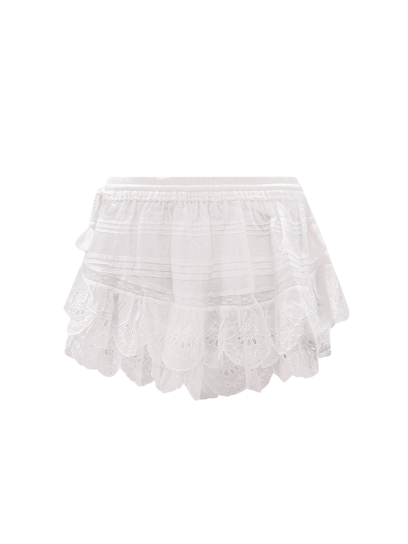 Elastic waistband Adjustable drawstring waist Embroidered trim Mini skirt 100% organic cotton SKU: SH0255FAD1J05E20WH