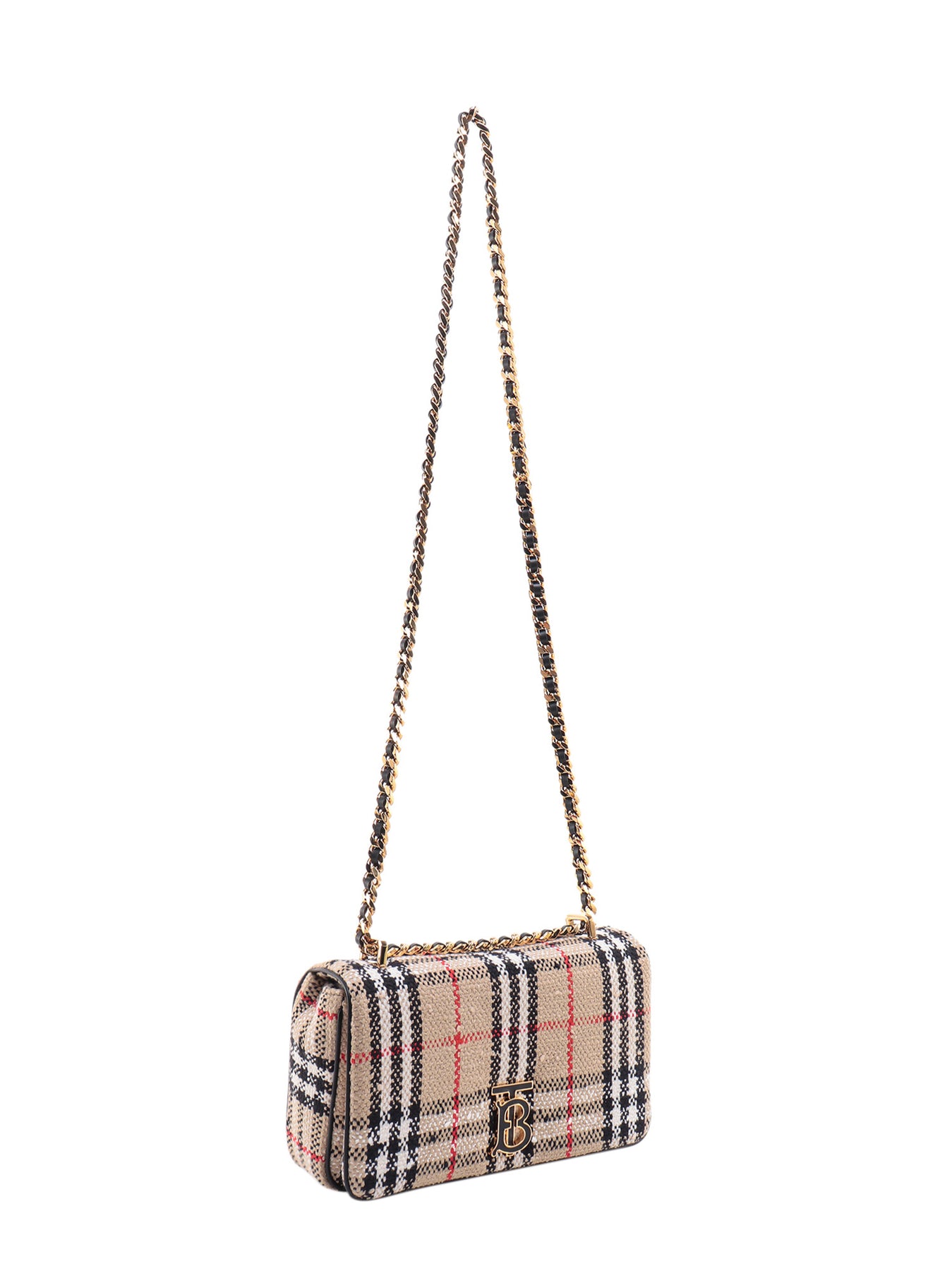 Wool And Bouclé Cotton Shoulder Bag With Vintage Check Motif
