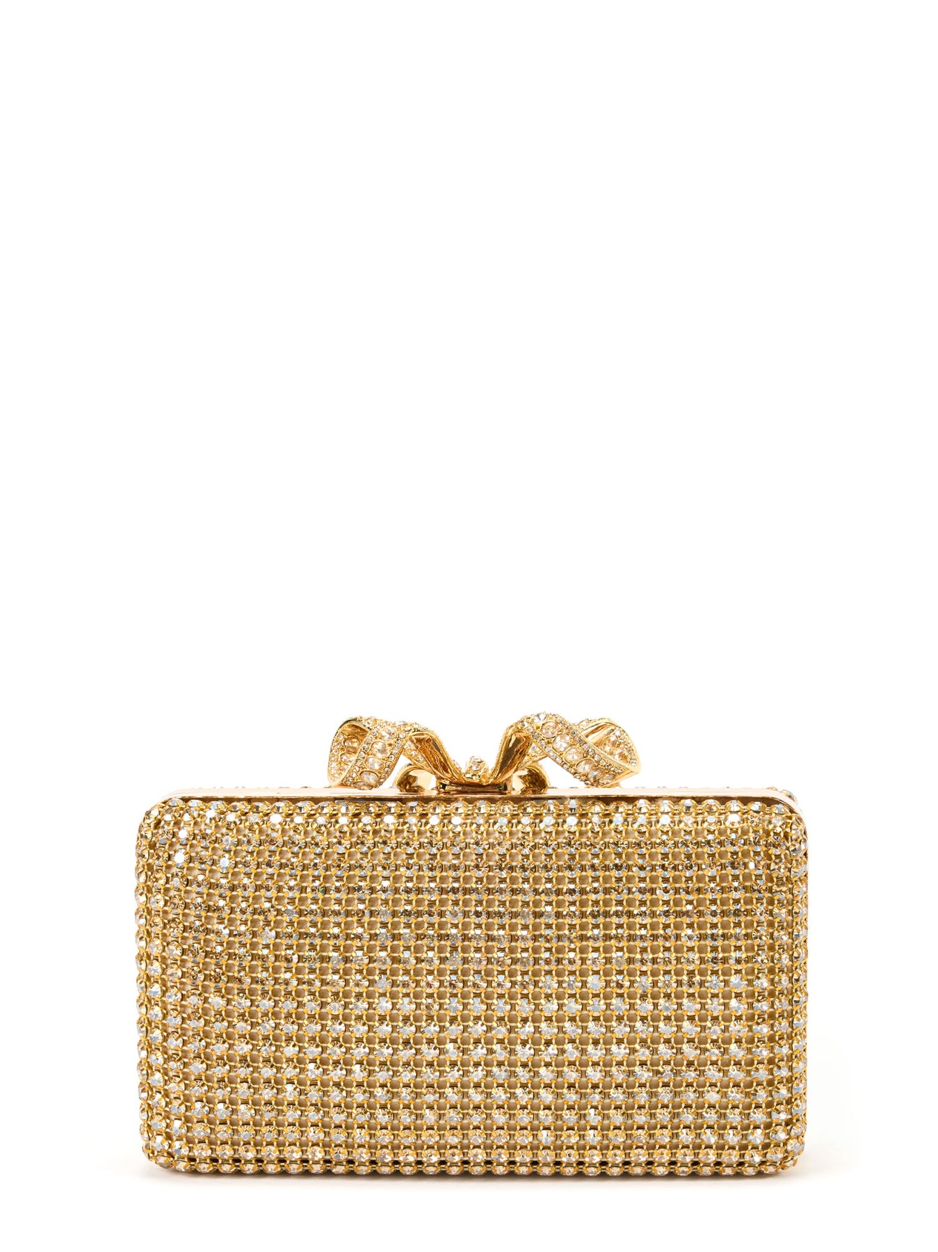 SKU: RS25306GD_GOLD - Snap closure removable metal shoulder strap one compartment for credit cards lined 100% polyester